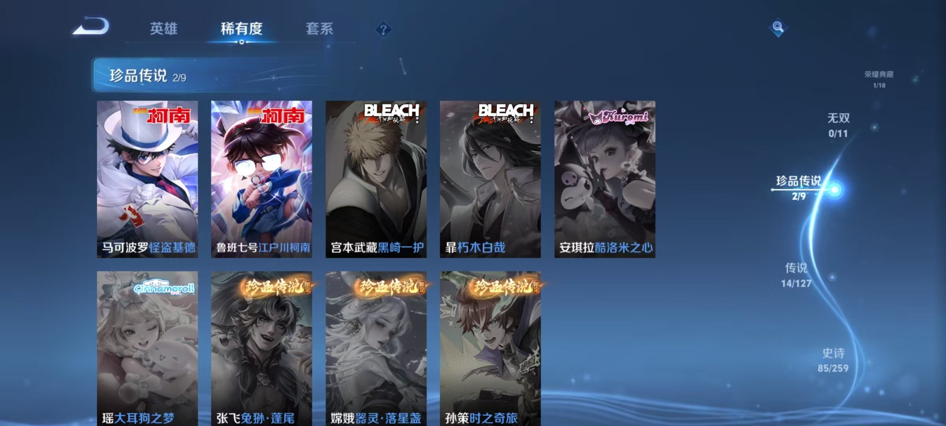 [11606760]V8 1典藏 2珍品传说 14传说 125英雄 304皮肤 可修改实名 优质装备:最初的交响(伽罗典藏),江户川柯南,怪盗基德,黄金射手座,冠军飞将,一念神魔,地狱火,地狱之眼,飞鸢探春,游龙清影(小青龙),淬星耀世,超时空战士-狄仁杰 传说皮:云诺千山,幻光神枪 珍宝阁皮:优雅恋人,蔷薇恋人,玩趣恶龙 限定皮:愿照·岁时盈(虞姬年限),鸣野蒿,至尊宝,高山流水,匿光决锋者,五谷丰年,梁祝,天狼狩猎者,烈魂,天狼溯光者,朱雀志(守约年限),如梦令-后羿,孙行者,猪悟能,大圣娶亲,云端筑梦师 史诗皮:灵蛊蚀心,谪仙醉月,龙之律动,芈月浮光幕影,蔬乡物语(鲁班七号),百相守梦-黄忠,遇见神鹿,紫霞仙子,苍穹之光,电玩小子(小书包),黄金分割率,特工魅影,永昼,魅语,高渐离燃音魔法,无限星赏官,冰冠公主,晚萤,龙骑士(小龙虾),末日机甲-吕布,猫狗日记-孙策,时之恋人-孙尚香,乱世虎臣,节奏热浪,修罗,女仆咖啡,摇滚巨星,水果甜心,绅士熊喵,天才门将,星夜王子,时之奇旅-安琪拉,功夫厨神,德古拉伯爵,暗隐猎兽者,幽灵船长,鬼剑武藏,心灵战警,地狱岩魂,拒霜思,缤纷独角兽,乘风破浪,逐浪之夏,龙鼓争鸣,月团寄思,水晶猎龙者,曙光守护者,热力回旋,箭羽风息,金属风暴,圣诞狂欢,圣诞恋歌,鹰眼统帅,魅力维加斯,无心,未来纪元-赵云