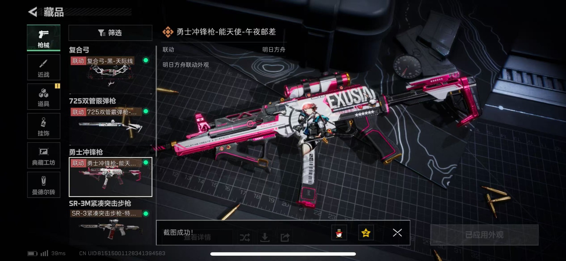 - [12040004]【暑期末清货/特价急出/永久包赔】:安卓 手Q-6粉装-2特效枪-5w热力值-10印记-145套装-164枪皮【热门品类】:角色-军刀雅典娜【特效枪等级】:Kar98K-巳巳如意(五级),DP-28-豹影疾电(一级)【优质套装】:粉装-炙焰赤龙,粉装-飒粉甜心,角色-呆萌星弥,粉装-镜光幻境,粉装-夜幕颂歌,粉装-幻影飞狐