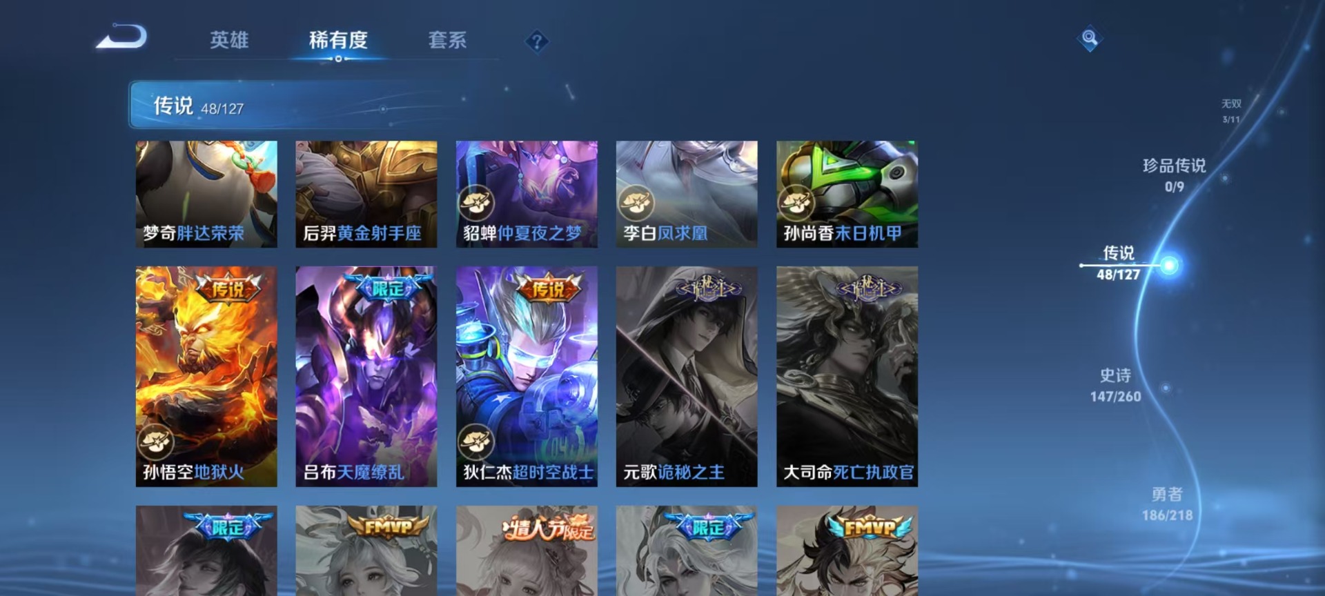 - [11657391]V6 5传说 122英雄 188皮肤 可修改实名 优质装备:地狱火 珍宝阁皮:玩趣恶龙 限定皮:愿照·九州拓(澜年限),鸣野蒿,至尊宝,凤求凰(白切鸡),时雨天司(水龙头),五谷丰年,青龙志(铠年限),梁祝,天狼狩猎者,李小龙,大圣娶亲,引擎之心,神器·万象笔 史诗皮:黄金分割率,特工魅影,千年之狐,魅语,冰冠公主,末日机甲-吕布,时之恋人-孙尚香,乱世虎臣,水果甜心,绅士熊喵,心灵骇客,鬼剑武藏,纤云弄巧,繁星吟游(呼啦呼啦),逐浪之夏,水晶猎龙者,圣诞狂欢,鹰眼统帅,魅力维加斯,赏金猎手,无心,未来纪元-赵云