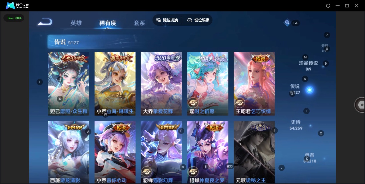 - PX_2103055-Q/至尊星耀/189皮肤/125英雄/1典藏/0珍品无双/0无双/1珍品传说/19传说/62史诗/9稀有英雄 【1 珍品传说】大耳狗之梦 瑶, 【1 典藏皮肤】拾光映像 瑶, 【19 传说皮肤】云霓雀翎 虞姬,无双飞将 马超,云鹰飞将 曜,仲夏夜之梦 貂蝉,炽阳神光 镜,时之恋人 刘备,战鼓燎原 典韦,炽翼辉光 伽罗,乘龙·铭钟鼎 赵云,妄想实况 马可波罗,冥王哈迪斯 铠,心