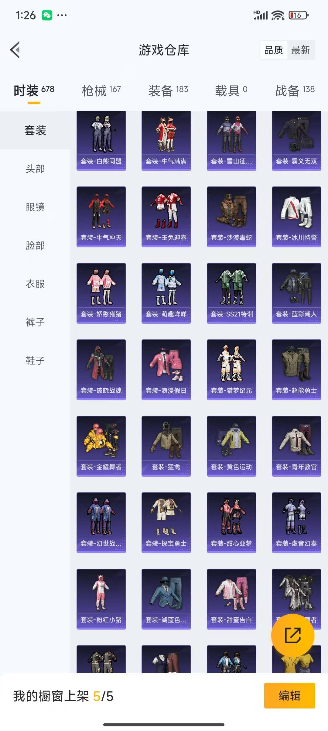 [11607175]3粉装 5特效枪 12印记 可二次 可修改实名 优质装备:M16A4垂柳戏鸭,SCAR-L-锦绣绵绵,M416电玩时刻,Kar98K-巳巳如意 热门装扮:朗月武圣,未来歌姬,创世·救赎,鹰眼刺客,梦魇先生 稀有枪皮:DP-28-豹影疾电 五级特效枪:五级Kar98K-巳巳如意,五级DP-28-豹影疾电,五级M416-电玩时刻,五级SCAR-L-锦绣绵绵,五级M16A4-垂柳戏鸭 紫色装扮:田园牧歌,轻风白浪,SS22特训,SS23特训,幻彩翩翩,妙红点点,龙舌兰冰茶,白兰地假日,娇憨猪猪,萌趣咩咩,SS21特训,浪漫假日,SS31特训套装,云霄猎人,人气偶像,军械专家,冰川特警,冷焰舞者,旭日情侣,SS33特训套装,顶瓜瓜,SS20特训,猎梦纪元,SS19特训,甜心亚梦,虚音幻奏,SS18特训,都市魅力,酒红色名流,野性战心,长空猛禽,雨林探路者,雪山征服者,霓虹街区,霸义无双,青年教官,青春校园,风暴特警,缤纷果语,苍穹猎鹰,荣耀,蓝彩潮人,蓝色运动,血色贵族,街头潮人,超能勇士,绛羽幽主,飞行日记,龙腾端午,魅力单车,鹤鸣,麻辣教官,黄色伏地魔,黄色名流,黄色运动,黑色伏地魔,龙的传人,龟仙人,冰河战士,蝶变,香桃花海,沙漠毒蛇,极地朋克,极速红龙,柠萌假日,橘黑制服,沙漠兵团,活力之心,派对绅士,海岛探路者,涂山之恋,深蓝色名流,清新柠檬,幻影武者,坚韧舞者,完美偶像,帅气教官,幻世战舞者,战地督导,探宝勇士,湖蓝色名流,绮丽涂鸦,甜蜜菠萝,白熊同盟,白色伏地魔,破晓战魂,破蛋小黄鸡,甜蜜告白,空岛之星,空投萌叽,竞技达人朋克,红色运动,王牌教练,牛气冲天,灰色格斗者,灼焰舞者,炫蓝之夏,热血骑手,燃烧卡路里,牛气满满,猛禽,特战英豪,特殊使命,特训学院,猎鹰,SS29特训,拉斐尔,星途旅人,创世·幻影,纯真浪花,热情海星,SS28特训,卖崽青蛙,创世·追猎,冰公主,红潮炫舞,鱼渊荷华,玉兔迎春,燕燕于飞,竞技名士,许七安,情公主,惊鸿侠骨,甜梦熊熊,神气柴柴,懵萌河马,SS24特训(SS24特训套装),SS25特训,绝对偶像,锦衣飞扬,粉红小猪,焰鹰斗篷,幻羽潜行,SS27特训,SS26特训,春光漫游,快闪甜心,贝斯之夜,智谋强哥,精神漫游,格斗专家,核芯基因,大橘大利,耀粉歌者,SS32特训服(SS32特训套装),青玉碎影,绯格组合,萌黄之夏,白糯汤圆,恋