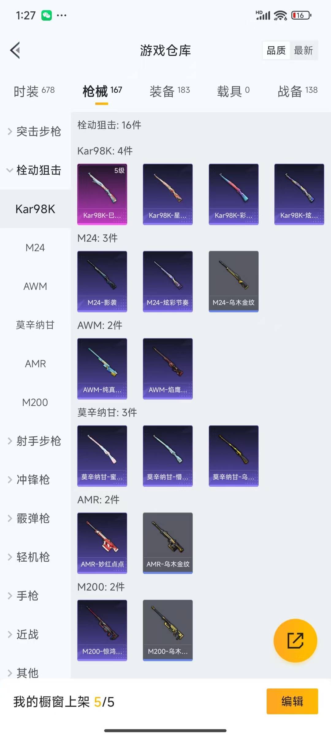 - [11577327]总资产:33.3M 5传说枪械 哈夫币:3.299K 可二次 可修改实名 烽火地带段位:黄金 全面战场段位:无段位 传说武器皮肤:UZI冲锋枪-特斯拉线圈,SR-3M紧凑突击步枪-特斯拉线圈,勇士冲锋枪-能天使-午夜邮差,Vector冲锋枪-能天使-午夜邮差,M4A1突击步枪-阿米娅 史诗武器皮肤:QJB201轻机枪-Old Habits,SV-98狙击步枪-林中猎手