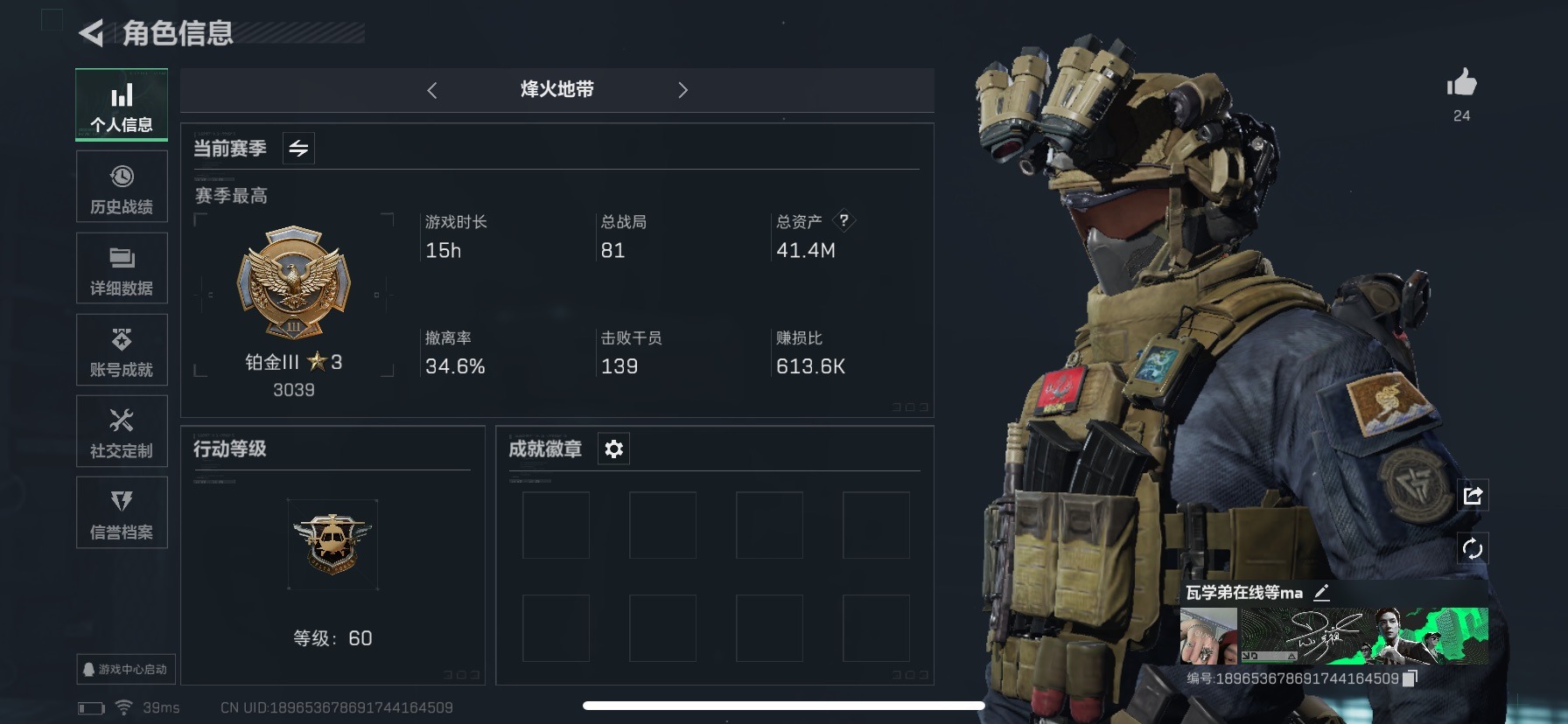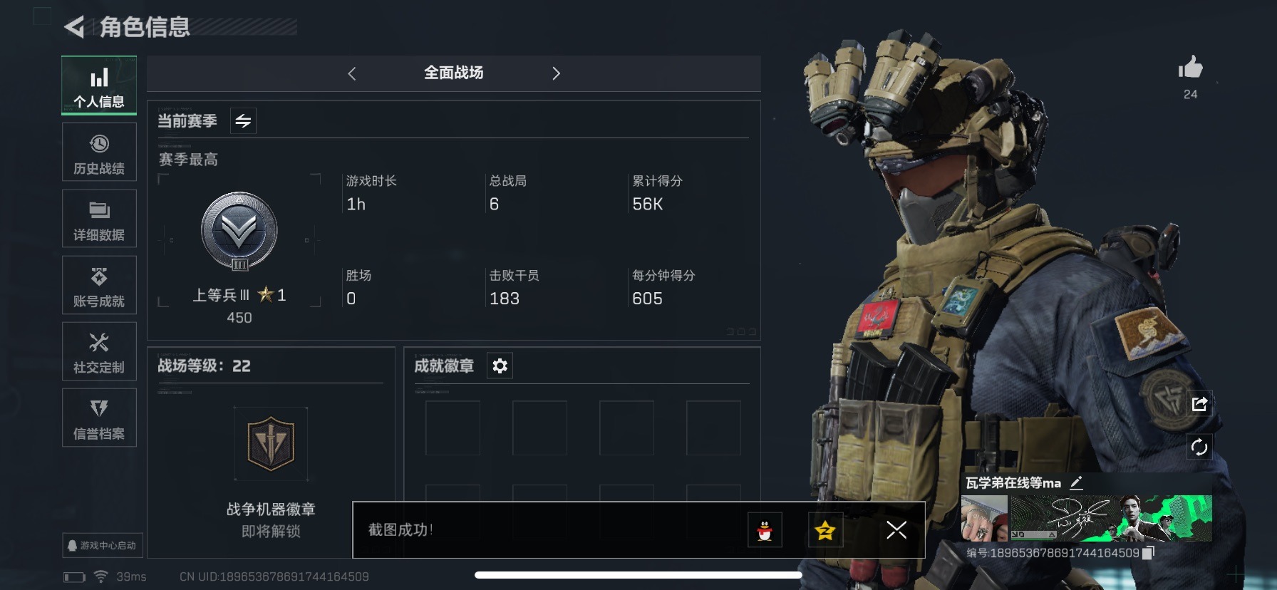 [11607213]总资产:41.4M 1近战传说 7传说枪械 哈夫币:11.300K 高级安全箱(9.17到期) 可二次 可修改实名 优质装备:近战-北极星 烽火地带段位:铂金 全面战场段位:上等兵 传说武器皮肤:勇士冲锋枪-能天使-午夜邮差,复合弓-黑-天际线,K437突击步枪-北极星,QCQ171冲锋枪-北极星,725双管霰弹枪-送葬人-无题密令,AK-12突击步枪-夜鹰 史诗武器皮肤:AUG突击步枪-蝮蛇,M700狙击步枪-蝮蛇,M16A4突击步枪-竞赛选手,SV-98狙击步枪-林中猎手,AS Val突击步枪-典狱官,SV-98狙击步枪-囚徒,PSG-1射手步枪-无垢,PKM通用机枪-荒野求生,QBZ95-1突击步枪-曙光