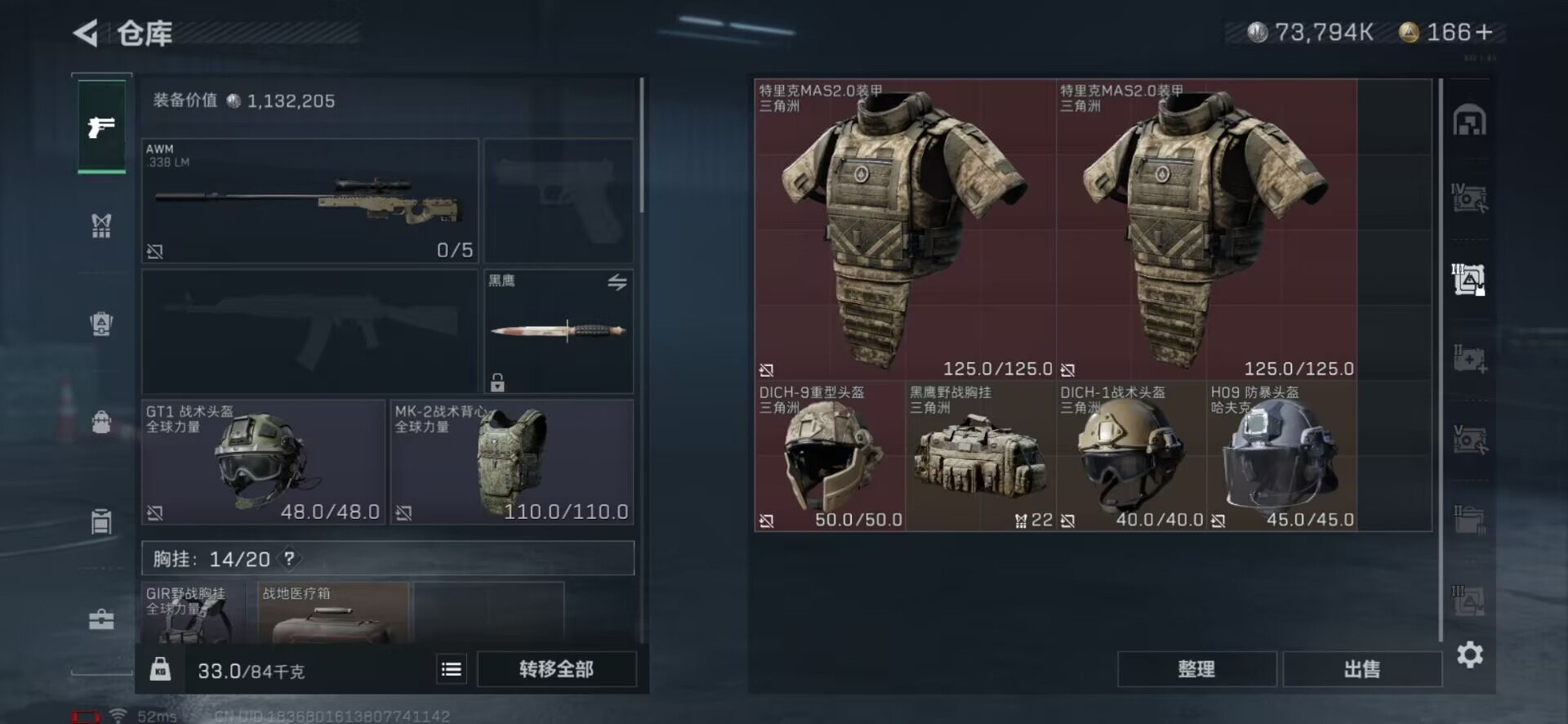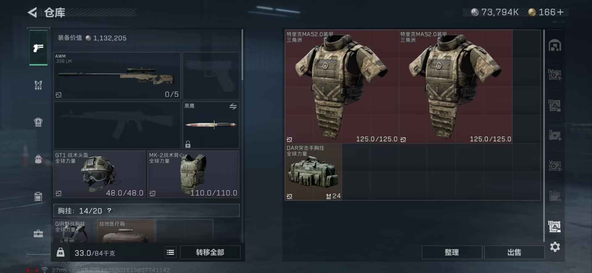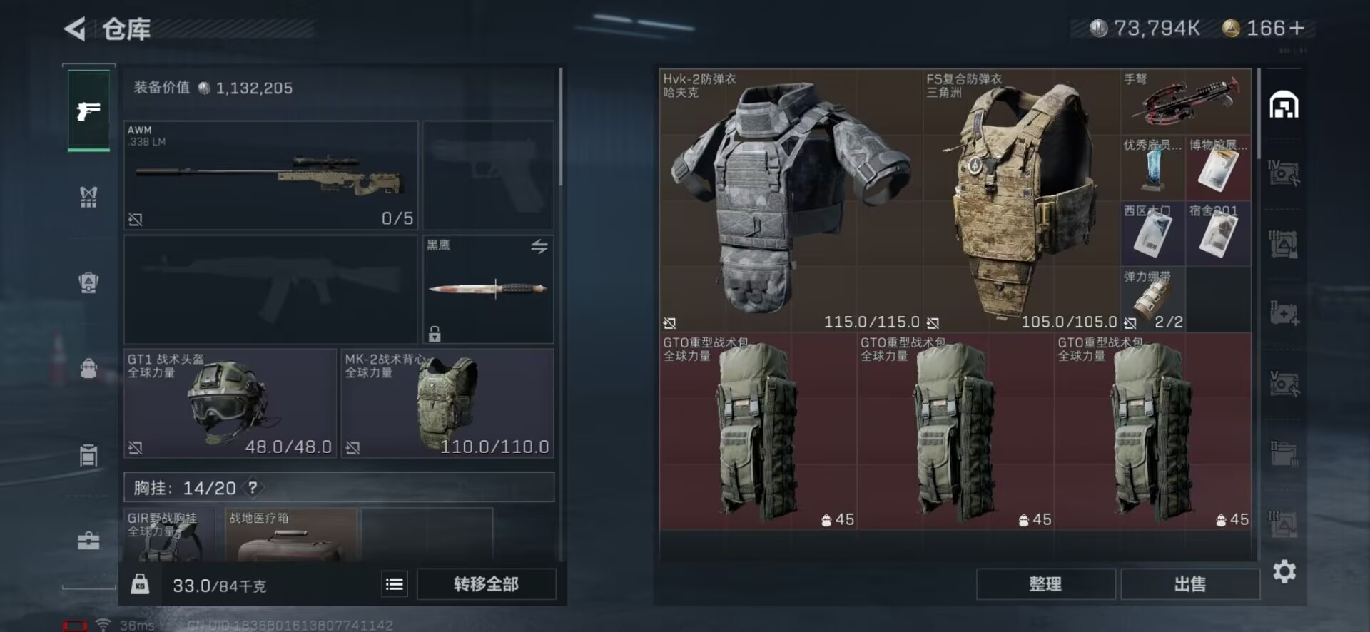 - [11227734]实名: 可修改 时装数: 833 载具数: 2 枪械数: 283 战备数: 230 热门装扮: 奇异狩猎者,梦幻火箭(新101),极限特训,怪诞乔克,深海小丑鱼,宝贝奶油派,天使彩虹糖,鹰眼刺客,都市猎人,洛天依,星夜魔法师,S1赛事上衣,萌神柯基,派对舞王,圣堂之誓,初号机 觉醒Ver.,S1赛事套装,星穹咏叹调 载具: 玛莎拉蒂Quattroporte(夜幕蓝),黑曜夜骑 稀有枪皮: M24暗星紫秘,M417第五大道,Kar98K-巳巳如意,M416-灵猫魔法师,DP-28-豹影疾电,MG-36-沧焰双生