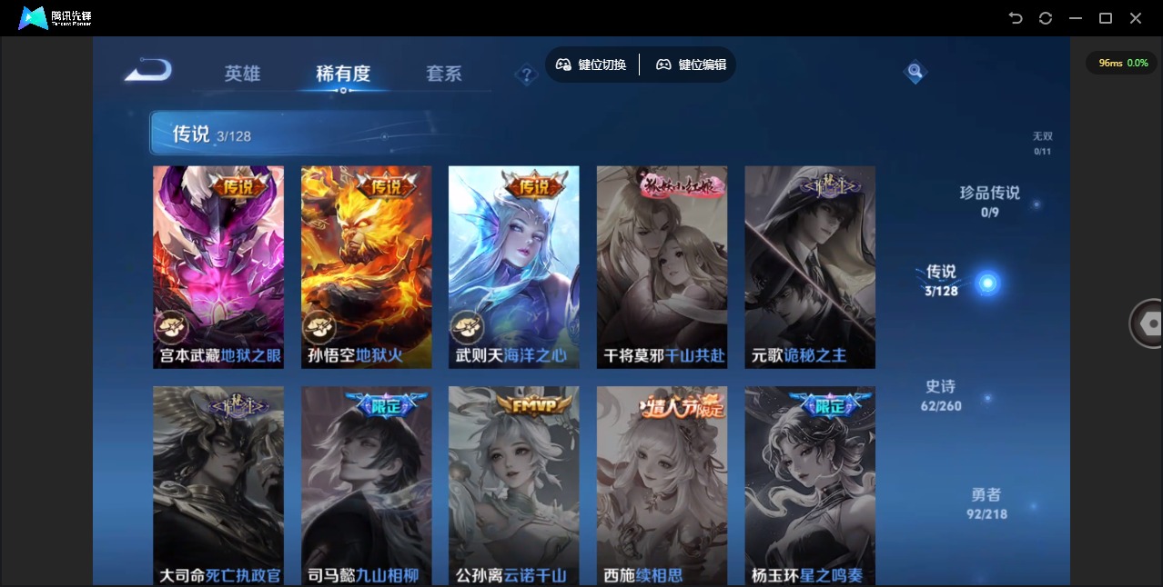 [11607781]V7 1典藏 3传说 125英雄 217皮肤 典藏英雄武则天 可修改实名 优质装备:全息碎影(猴子典藏),地狱火,海洋之心,地狱之眼 珍宝阁皮:蔷薇恋人,玩趣恶龙 限定皮:至尊宝,飞衡(韩信年限),瑞麟志(木兰年限),遇见飞天,高山流水,梁祝,李小龙,朱雀志(守约年限),如梦令-后羿,猪悟能,一生所爱,大圣娶亲 史诗皮:海诺心动手记,决胜骁骑,紫霞仙子,苍穹之光,电玩小子(小书包),白龙吟,黄金分割率,千年之狐,永昼,百解令(蒙犽),无限星赏官,冰冠公主,偶像歌手,末日机甲-吕布,节奏热浪,修罗,水果甜心,天才门将,星夜王子,心灵骇客,德古拉伯爵,暗隐猎兽者,幽灵船长,鬼剑武藏,心灵战警,舞动绿茵,拒霜思,缤纷独角兽,乘风破浪,水晶猎龙者,曙光守护者,金属风暴,原初追逐者,圣诞狂欢,圣诞恋歌,鹰眼统帅,魅力维加斯,黎明之约,未来纪元-赵云
