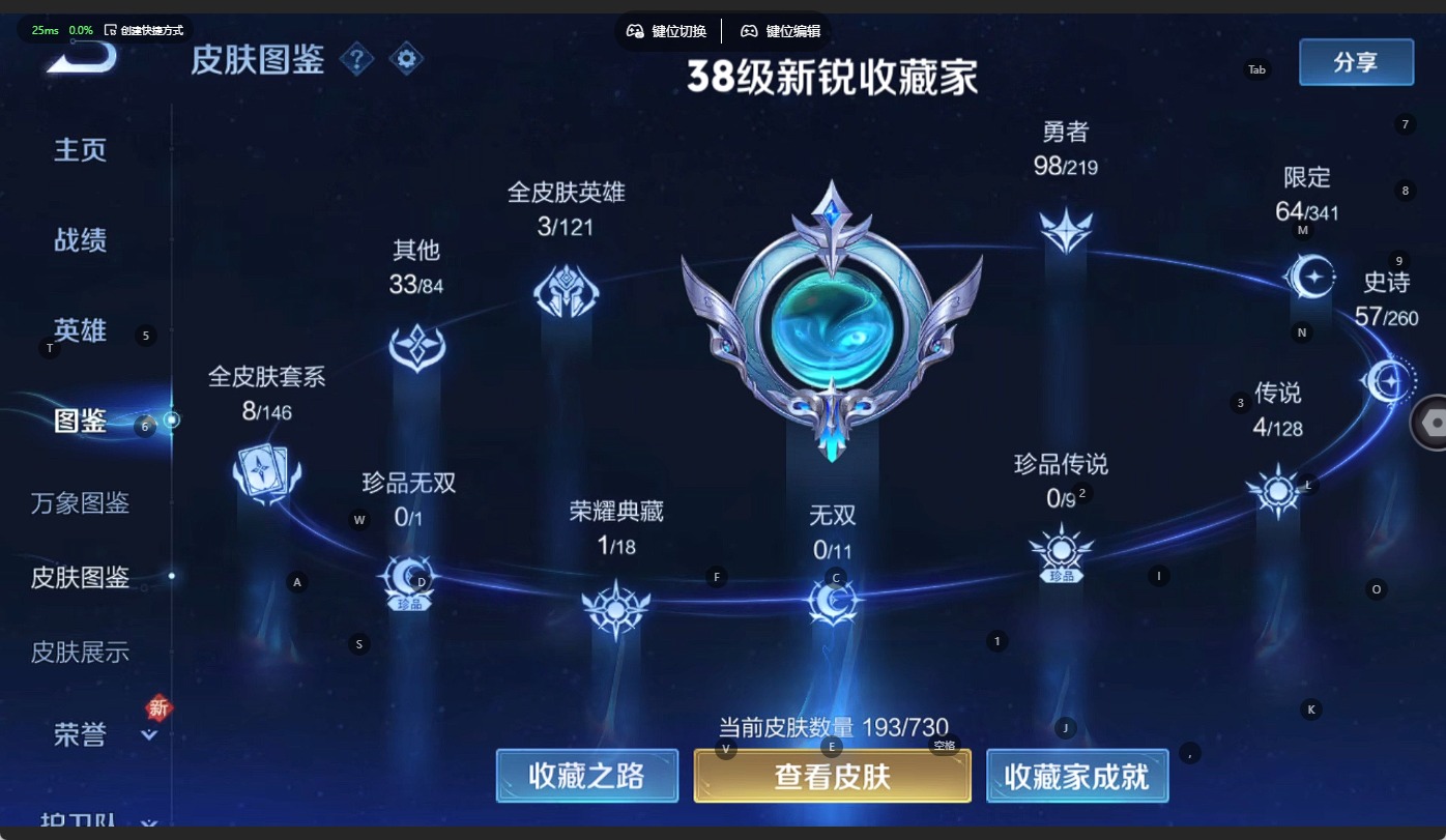 - PX_2100576-实名: 可修改 贵族等级: V8 英雄数: 123 皮肤数: 252 荣耀水晶: 星域神启 珍品传说: 酷洛米之心,大耳狗之梦 传说皮: 末日机甲-孙尚香,地狱火,仲夏夜之梦,地狱之眼,幻光神枪 限定皮: 遇见飞天,李小龙,梁祝,冰霜恋舞曲,梅西,高山流水,猪悟能,匿光追影者,鸣野蒿