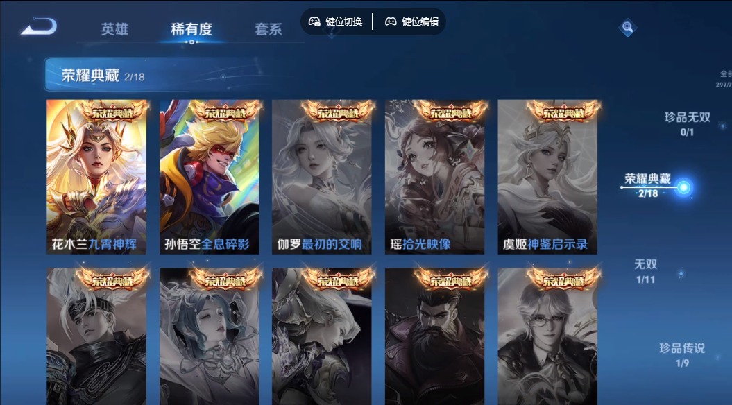 - [12056952]V9 2典藏 1珍品传说 32传说 126英雄 267皮肤 典藏英雄武则天 可修改实名 优质装备:鸣剑·曳影,九霄神辉(木兰典藏),酷洛米之心,黄金射手座,云鹰飞将(小将军),绛天战甲(鸡嘴战神),猫影幻舞,久胜战神,炽阳神光,一念神魔,云霓雀翎,地狱火,海洋之心,地狱之眼,飞鸢探春,胖达荣荣,时之恋人-刘备(电焊工),淬星耀世,遇见胡旋,无双飞将,诡秘之主,涂山容容 传说皮:死亡执政官,九山相柳,云诺千山,星之鸣奏,幻光神枪 珍宝阁皮:玩趣恶龙 限定皮:愿照·九州拓(澜年限),至尊宝,凤凰于飞,太华(伽罗年限),武陵仙君(小桃花),异界灵契(白毛香),傲雪梅枪,时之彼端,神威(电光马子),飞衡(韩信年限),玄嵩(庄周年限),至美·化雀舞,高山流水,诗剑行,怒海麟威,五谷丰年,幽恒(沐浴露),游园惊梦,梁祝,岱宗(典韦年限),虎魄,天狼绘梦者,李小龙,辉光之辰,如梦令-嫦娥,如梦令-后羿,孙行者,引擎之心,天魔缭乱 史诗皮:鸭鸭历险记-刘禅,器灵·浮梦炉,化蝶舞,龙之律动,雪豹·霜爪,石田雨龙,百相守梦-周瑜,蔬乡物语(鲁班七号),百相守梦-黄忠,织梦人,守夜人,遇见神鹿,紫霞仙子,白龙吟,江河有灵,魅语,冰冠公主,偶像歌手,晚萤,龙骑士(小龙虾),猫狗日记-孙策,时之恋人-孙尚香,乱世虎臣,修罗,女仆咖啡,摇滚巨星,水果甜心,星夜王子,心灵骇客,时之奇旅-安琪拉,功夫厨神,德古拉伯爵,幽灵船长,鬼剑武藏,心灵战警,天秀·启明,繁星吟游(呼啦呼啦),缤纷独角兽,乘风破浪,水晶猎龙者,曙光守护者,热力回旋,箭羽风息,金属风暴,圣诞狂欢,鹰眼统帅,奇遇舞章,千筹问战,无心