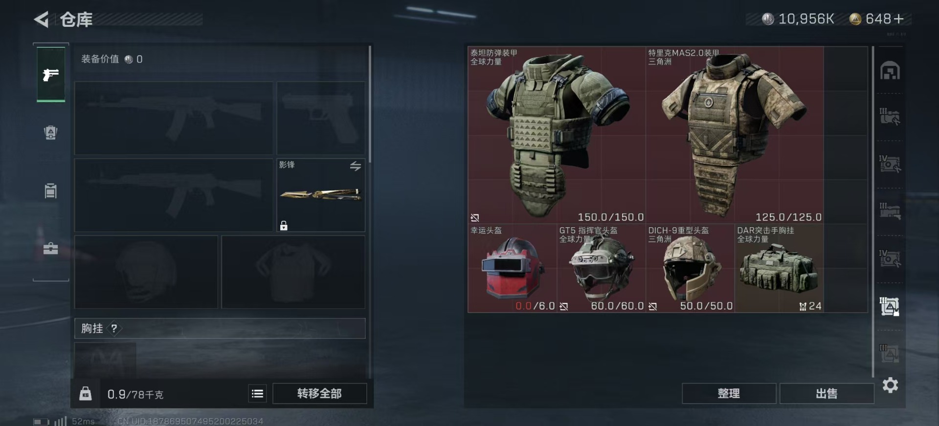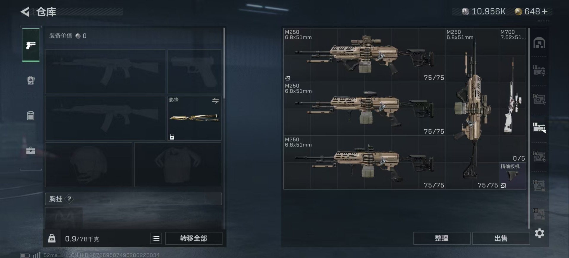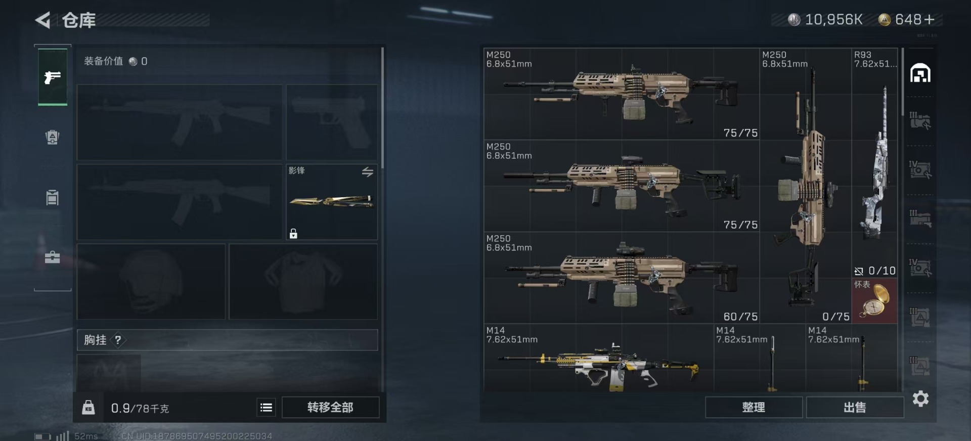 - [11515392]总资产:40.2 2干员外观 1近战传说 9传说枪械 高级安全箱(9.17到期) 可二次 可修改实名 优质装备:近战-北极星,K416突击步枪-命运(典藏) 烽火地带段位:铂金 全面战场段位:无段位 哈夫币:2.769 传说武器皮肤:AK-12突击步枪-夜鹰,M16A4突击步枪-狩猎时刻,Vector冲锋枪-狩猎时刻,G3战斗步枪-狩猎时刻,勇士冲锋枪-能天使-午夜邮差,725双管霰弹枪-送葬人-无题密令,M4A1突击步枪-蚀金玫瑰 干员外观:红狼-蚀金玫瑰,露娜-黑·天际线
