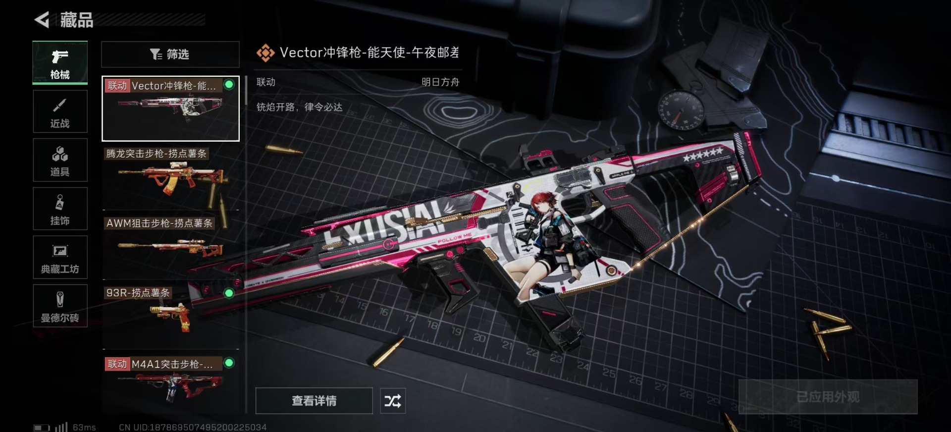 [11607963]总资产:104.9M 1干员外观 1近战传说 25传说枪械 哈夫币:10.956K 高级安全箱(2×3)9.15号到期 可二次 可修改实名 优质装备:近战-影锋,M4A1突击步枪-棱镜攻势(典藏) 烽火地带段位:钻石 全面战场段位:军士长 传说武器皮肤:SR-25射手步枪-水墨云图,M1014霰弹枪-影锋,AWM狙击步枪-影锋,SCAR-H战斗步枪-铁艺苍穹,AK-12突击步枪-夜鹰,G18-飞虎,SMG45冲锋枪-骑士,M4A1突击步枪-阿米娅,CAR-15突击步枪-阿米娅,AWM狙击步枪-捞点薯条,腾龙突击步枪-捞点薯条,93R-捞点薯条,AK-12突击步枪-特斯拉线圈,SR-3M紧凑突击步枪-特斯拉线圈,UZI冲锋枪-特斯拉线圈,勇士冲锋枪-能天使-午夜邮差,725双管霰弹枪-送葬人-无题密令,M7战斗步枪-维京,M4A1突击步枪-蚀金玫瑰,AKM突击步枪-赤枭,QBZ95-1突击步枪-破军,CAR-15突击步枪-黑鹰坠落,Vector冲锋枪-能天使-午夜邮差 史诗武器皮肤:PKM通用机枪-荒野求生,SR-3M紧凑突击步枪-荒野求生,SVD狙击步枪-荒野求生,M250通用机枪-囚徒,SV-98狙击步枪-囚徒,SCAR-H战斗步枪-囚徒,腾龙突击步枪-无垢,MP7冲锋枪-无垢 干员外观:红狼-蚀金玫瑰