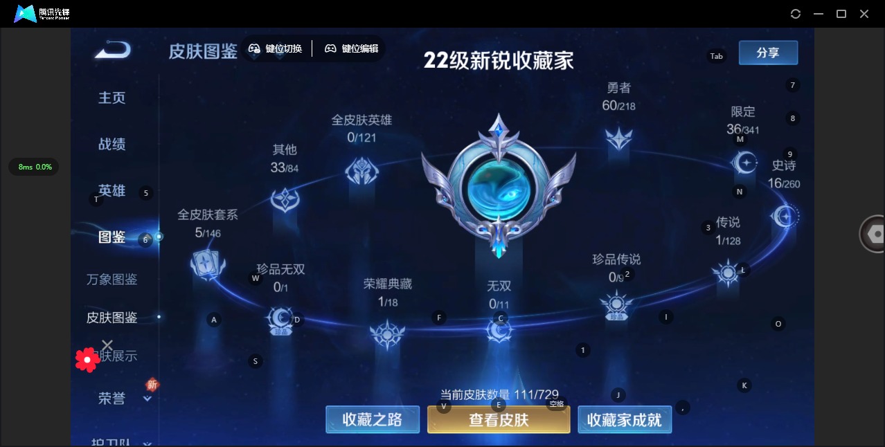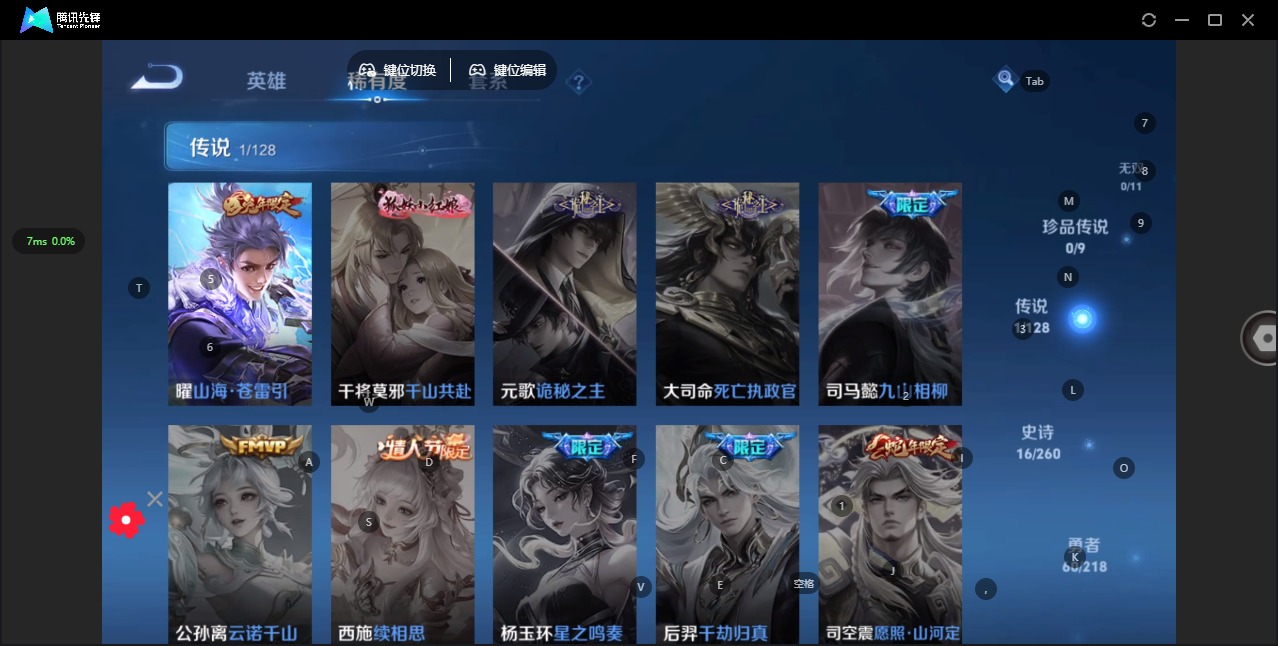 - [11883975]V8 1典藏 1珍品传说 17传说 125英雄 316皮肤 可修改实名 优质装备:鸣剑·曳影,怪盗基德,黄金狮子座,冠军飞将,久胜战神,云霓雀翎,末日机甲-孙尚香(绿蚂蚱),地狱火,零号·赤焰,地狱之眼 传说皮:乘龙·淬吴钩(孙策年限),死亡执政官,九山相柳,幻光神枪 珍宝阁皮:妄想食味,蔷薇恋人,玩趣恶龙 限定皮:愿照·九州拓(澜年限),逐霄战戟,鸣野蒿,白虎志(电光耗子),时雨天司(水龙头),神威(电光马子),飞衡(韩信年限),瑞麟志(木兰年限),遇见飞天,高山流水,五谷丰年,青龙志(铠年限),梁祝,天狼狩猎者,岱宗(典韦年限),李小龙,孙行者,猪悟能 史诗皮:器灵·浮梦炉,化蝶舞,星界战将,龙之律动,百相守梦-周瑜,茶境仙,破空之剑,蒙犽顽岩魄,蔬乡物语(鲁班七号),百相守梦-百里守约,百相守梦-黄忠,紫霞仙子,苍穹之光,电玩小子(小书包),特工魅影,千年之狐,江河有灵,雪夜绮愿(周瑜),百解令(蒙犽),高渐离燃音魔法,蒙恬荣光圣徽,冰冠公主,青蛇,偶像歌手,电玩·爆裂旋风,百相守梦(刘备),暗夜猫娘,末日机甲-吕布,猫狗日记-孙策,乱世虎臣,节奏热浪,修罗,女仆咖啡,摇滚巨星,水果甜心,星夜王子,心灵骇客,功夫厨神,德古拉伯爵,暗隐猎兽者,幽灵船长,鬼剑武藏,心灵战警,乐园奇幻夜,天秀·启明,舞动绿茵,地狱岩魂,纤云弄巧,拒霜思,乘风破浪,逐浪之夏,水晶猎龙者,曙光守护者,箭羽风息,金属风暴,原初追逐者,圣诞恋歌,鹰眼统帅,魅力维加斯,黎明之约,赏金猎手,无心,未来纪元-赵云