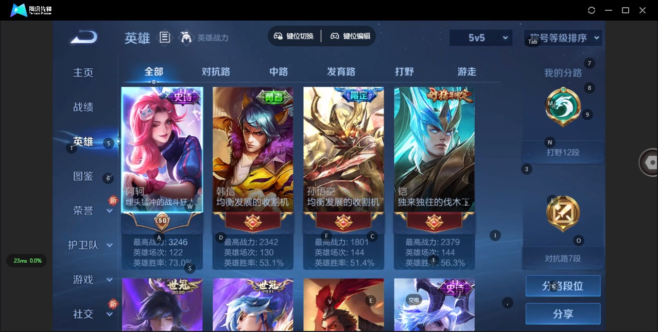 - [11852392]V7 6传说 123英雄 209皮肤 可修改实名 优质装备:炽阳神光,末日机甲-孙尚香(绿蚂蚱),地狱火,地狱之眼,无双飞将 珍宝阁皮:妄想食味,胡桃夹子 限定皮:逐霄战戟,鸣野蒿,至尊宝,五谷丰年,李小龙,逐梦之影,大圣娶亲,蜜橘之夏 史诗皮:鸭鸭历险记-刘禅,化蝶舞,龙之律动,茶境仙,紫霞仙子,白龙吟,特工魅影,千年之狐,电玩·爆裂旋风,末日机甲-吕布,乱世虎臣,修罗,水果甜心,星夜王子,德古拉伯爵,暗隐猎兽者,幽灵船长,鬼剑武藏,心灵战警,天秀·启明,纤云弄巧,繁星吟游(呼啦呼啦),缤纷独角兽,金属风暴,原初追逐者,圣诞狂欢,圣诞恋歌,鹰眼统帅,魅力维加斯,黎明之约,赏金猎手