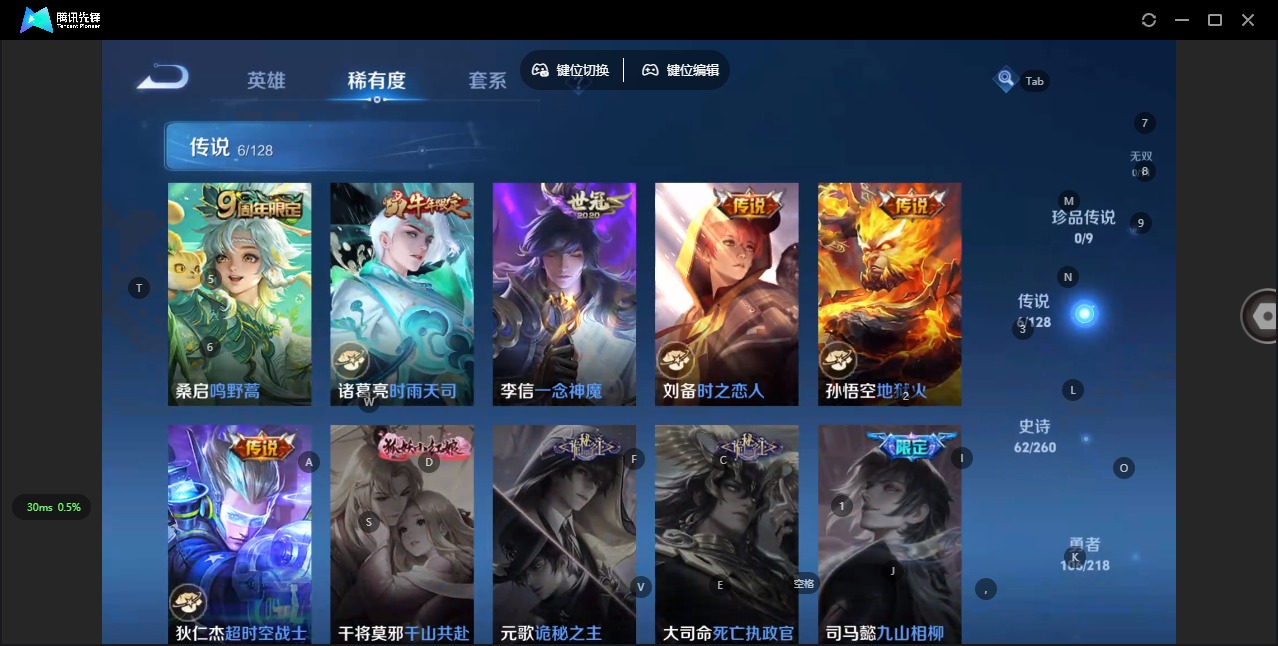 - [10559440]V7 1典藏 16传说 123英雄 259皮肤 可修改实名 优质装备:鸣剑·曳影,冠军飞将,云鹰飞将(小将军),仲夏夜之梦(大飞蛾),地狱之眼,时之恋人-刘备(电焊工),淬星耀世,山海·苍雷引(电光曜子),燃星之曲,电玩·雷克斯,澜逐花归海 传说皮:乘龙·问璇玑(孙尚香年限),祥瑞亨通 珍宝阁皮:妄想食味,蔷薇恋人,女武神 限定皮:愿照·九州拓(澜年限),愿照·山河定(司空震年限),鸣野蒿,至尊宝,遇见飞天,高山流水,诗剑行,五谷丰年,李小龙,孙行者,神器·万象笔,山海·玄木吟(马可年限) 史诗皮:器灵·浮梦炉,化蝶舞,星界战将,龙之律动,石田雨龙,茶境仙,怒海争锋,东方月初,蒙犽顽岩魄,埋骨钱,海诺心动手记,琥珀纪元伽罗,紫霞仙子,特工魅影,千年之狐,江河有灵,百解令(蒙犽),蒙恬荣光圣徽,偶像歌手,晚萤,电玩·爆裂旋风,猫狗日记-孙策,乱世虎臣,节奏热浪,修罗,摇滚巨星,水果甜心,星夜王子,德古拉伯爵,暗隐猎兽者,鬼剑武藏,舞动绿茵,地狱岩魂,纤云弄巧,缤纷独角兽,乘风破浪,逐浪之夏,月团寄思,水晶猎龙者,曙光守护者,箭羽风息,金属风暴,原初追逐者,圣诞狂欢,圣诞恋歌,鹰眼统帅,魅力维加斯,黎明之约,赏金猎手,无心,未来纪元-赵云