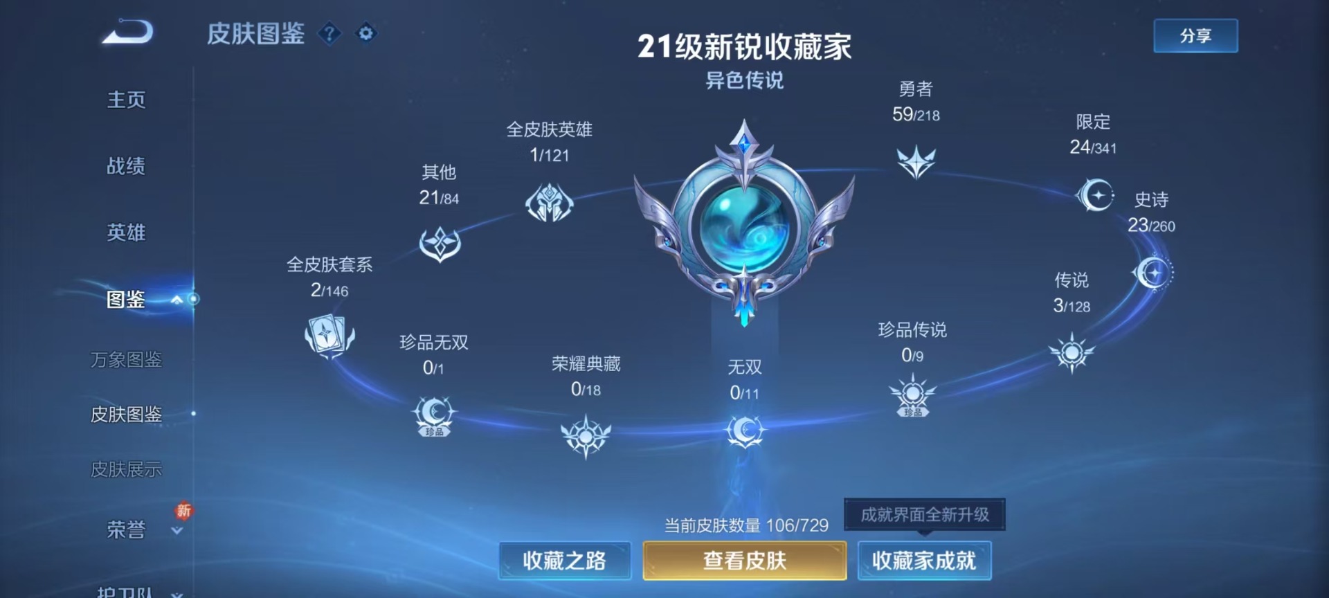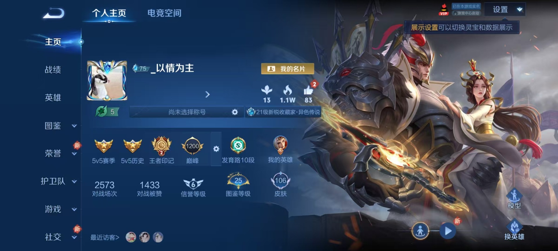 - PX_2073168-实名: 可修改 性别: 男号 贵族等级: V7 英雄数: 124 皮肤数: 291 荣耀水晶: 鸣剑·曳影 星传说: 金色仲夏夜,玉鸾吟 传说皮: 黄金射手座,云鹰飞将,久胜战神,末日机甲-孙尚香,仲夏夜之梦,零号·赤焰,胖达荣荣,李逍遥,超时空战士-狄仁杰,挚爱之约 限定皮: 冰锋战神,李小龙,奔雷神使,祈雪灵祝,游园惊梦,梁祝,御风骁将,时雨天司,异界灵契,白晶晶,天狼溯