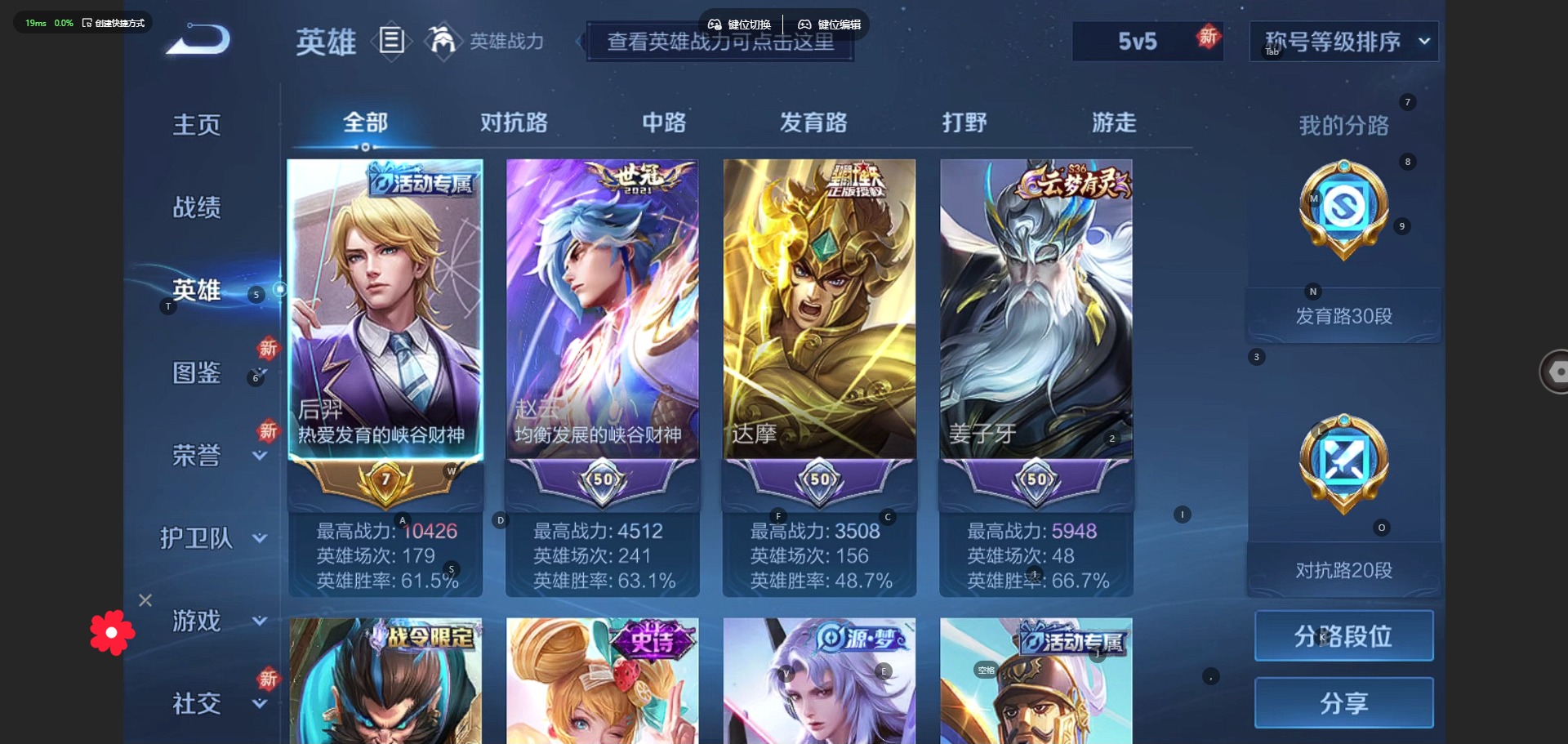 - [12139989]V9 2典藏 19传说 124英雄 224皮肤 可修改实名 优质装备:星域神启(倪克斯贼亮),幻阙歌(貂蝉典藏),黄金射手座,云鹰飞将(小将军),猫影幻舞,久胜战神,云霓雀翎,仲夏夜之梦(大飞蛾),李逍遥,游龙清影(小青龙),挚爱之约,碎云,鹤羽星尊 传说皮:乘龙·铭钟鼎(赵云年限) 珍宝阁皮:蔷薇恋人 限定皮:鸣野蒿,凤求凰(白切鸡),武陵仙君(小桃花),时雨天司(水龙头),山海·碧波行(瑶年限),天狼运算者,朱雀志(守约年限),孙行者,时之祈愿-云中君,时之祈愿-瑶(瑶传限),玉兔公主,深海之息(深海大菠萝),匿光启智者,神器·万象笔,山海·玄木吟(马可年限) 史诗皮:鸭鸭历险记-刘禅,谪仙醉月,石田雨龙,百相守梦-周瑜,茶境仙,海诺心动手记,遇见神鹿,紫霞仙子,黄金分割率,特工魅影,真我赫兹(百里守约),冰冠公主,青蛇,偶像歌手,末日机甲-吕布,时之恋人-孙尚香,乱世虎臣,水果甜心,绅士熊喵,心灵骇客,幽灵船长,鬼剑武藏,心灵战警,纤云弄巧,繁星吟游(呼啦呼啦),逐浪之夏,金属风暴,鹰眼统帅,魅力维加斯,未来纪元-赵云
