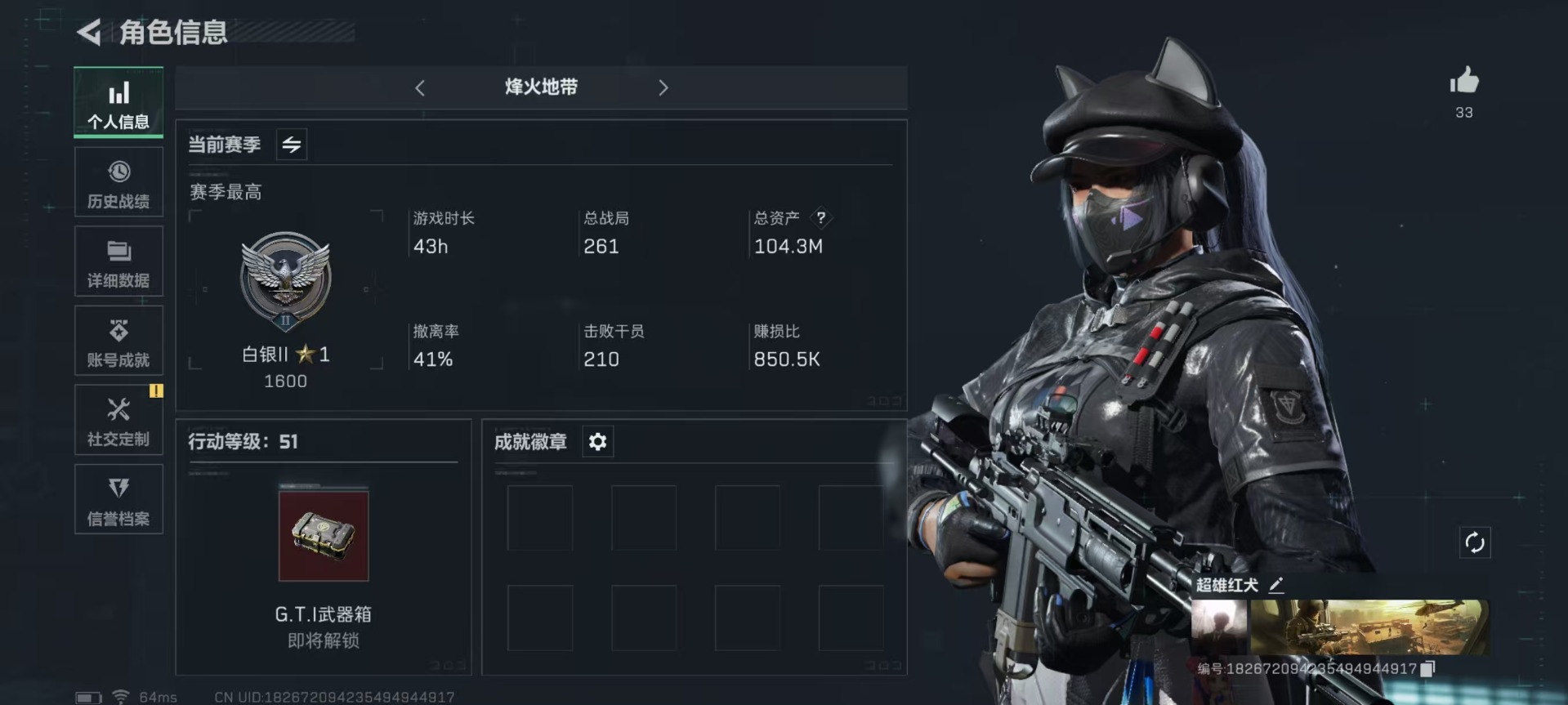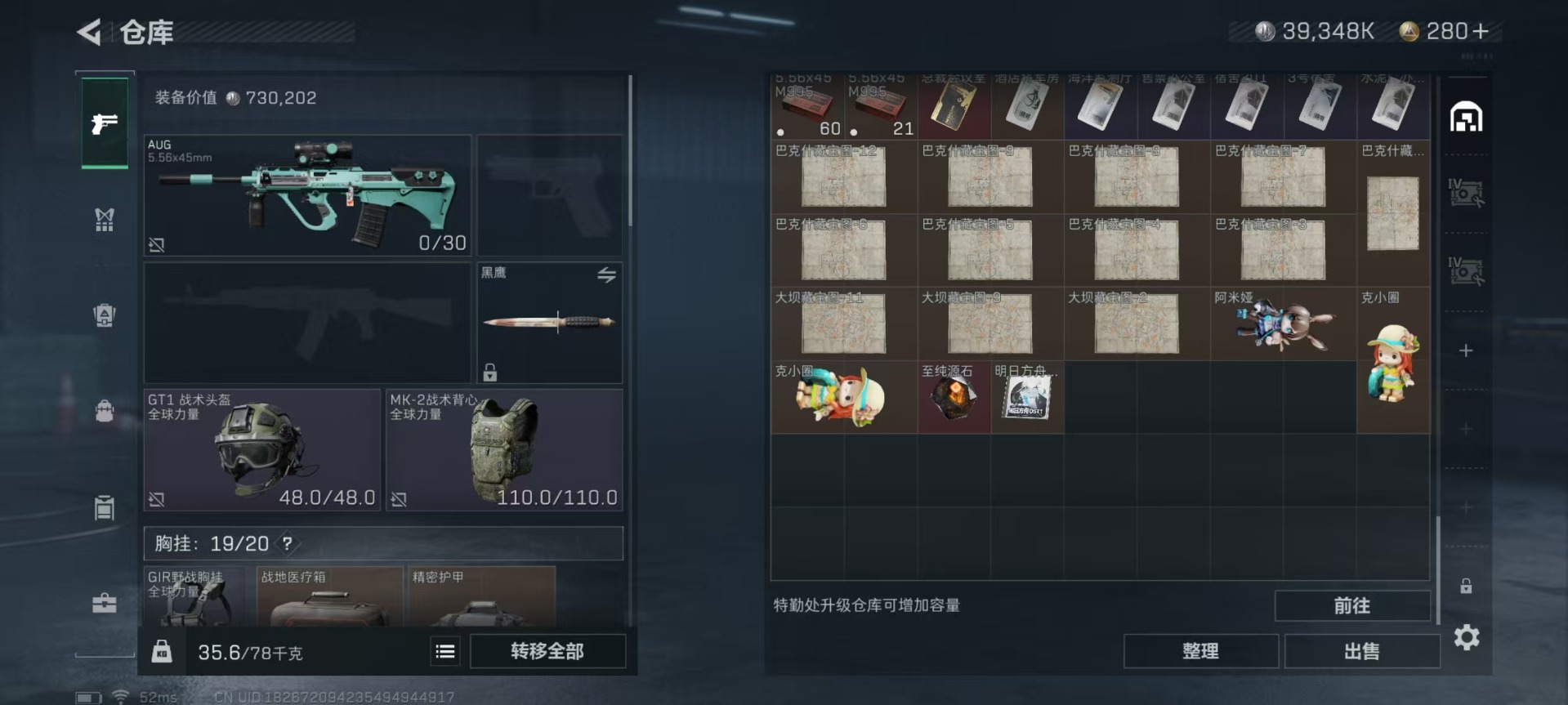 [11608311]总资产:104.3M 13传说枪械 哈夫币:39.348K 高级安全箱(2×3)9.15号到期 可二次 可修改实名 烽火地带段位:白银 全面战场段位:军士长 传说武器皮肤:93R-捞点薯条,Vector冲锋枪-狩猎时刻,G3战斗步枪-狩猎时刻,M16A4突击步枪-狩猎时刻,AWM狙击步枪-捞点薯条,腾龙突击步枪-捞点薯条,CAR-15突击步枪-阿米娅,勇士冲锋枪-能天使-午夜邮差,Vector冲锋枪-能天使-午夜邮差,复合弓-黑-天际线,M4A1突击步枪-阿米娅,725双管霰弹枪-送葬人-无题密令,M7战斗步枪-神秘艺术 史诗武器皮肤:PKM通用机枪-荒野求生,SV-98狙击步枪-林中猎手,SCAR-H战斗步枪-囚徒,PSG-1射手步枪-无垢,QBZ95-1突击步枪-曙光