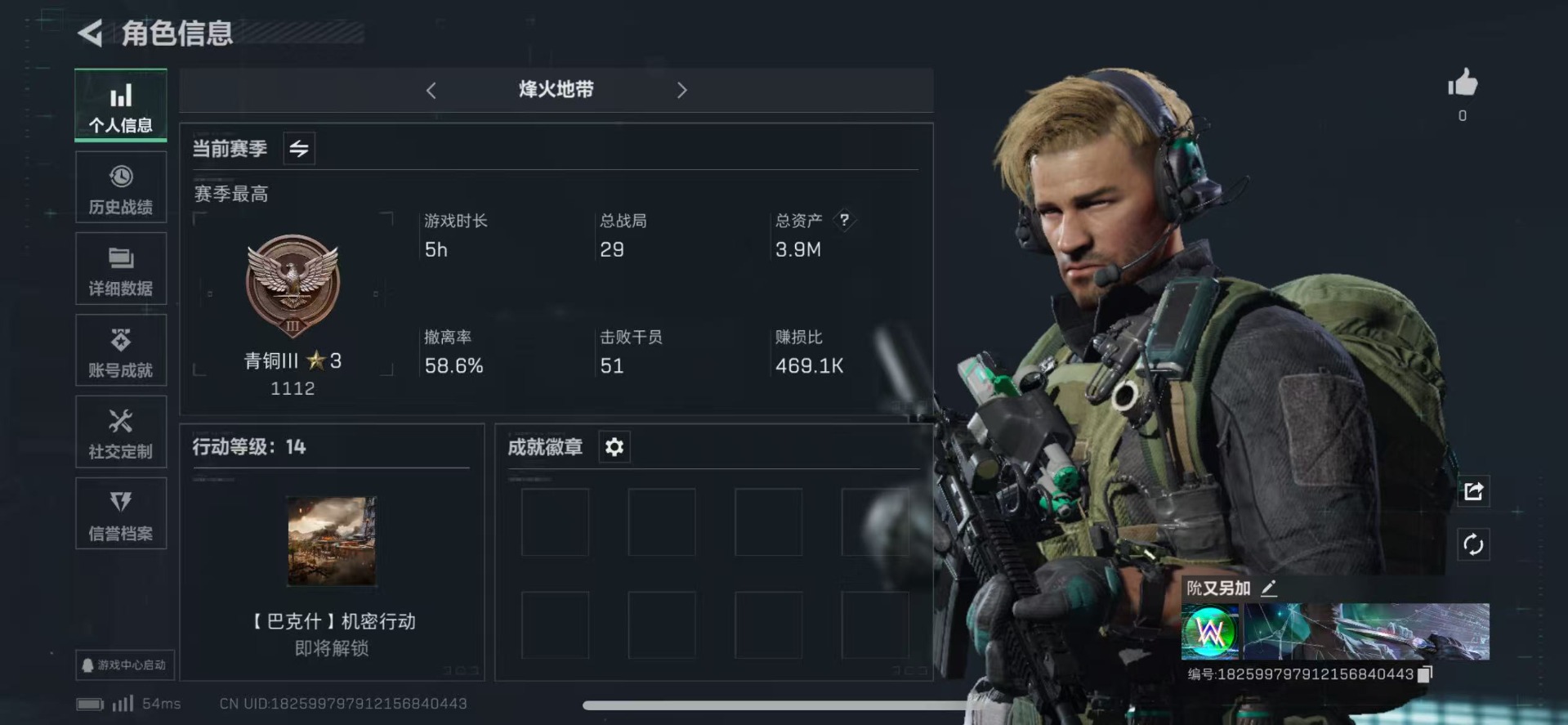 [11608332]总资产:3.9M 1近战传说 4传说枪械 哈夫币:474.146K 可二次 可修改实名 优质装备:近战-北极星 烽火地带段位:青铜 全面战场段位:无段位 传说武器皮肤:勇士冲锋枪-能天使-午夜邮差,K437突击步枪-北极星,QCQ171冲锋枪-北极星 史诗武器皮肤:AWM狙击步枪-私人定制(典藏)