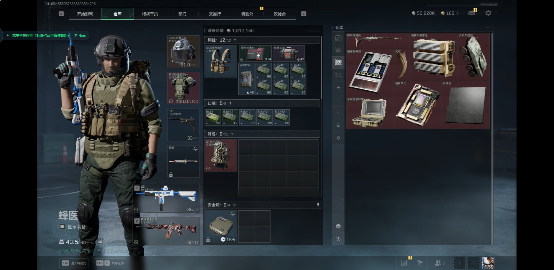 [11608393]总资产:147.9M 3传说枪械 哈夫币:50.820K 进阶安全箱(2×2)9.15号到期 可二次 可修改实名 烽火地带段位:黄金 全面战场段位:无段位 传说武器皮肤:CAR-15突击步枪-阿米娅,勇士冲锋枪-能天使-午夜邮差,复合弓-黑-天际线 史诗武器皮肤:AKM突击步枪-林中猎手,M1014霰弹枪-林中猎手,SV-98狙击步枪-林中猎手,沙漠之鹰-曙光,SVD狙击步枪-阿萨拉工艺