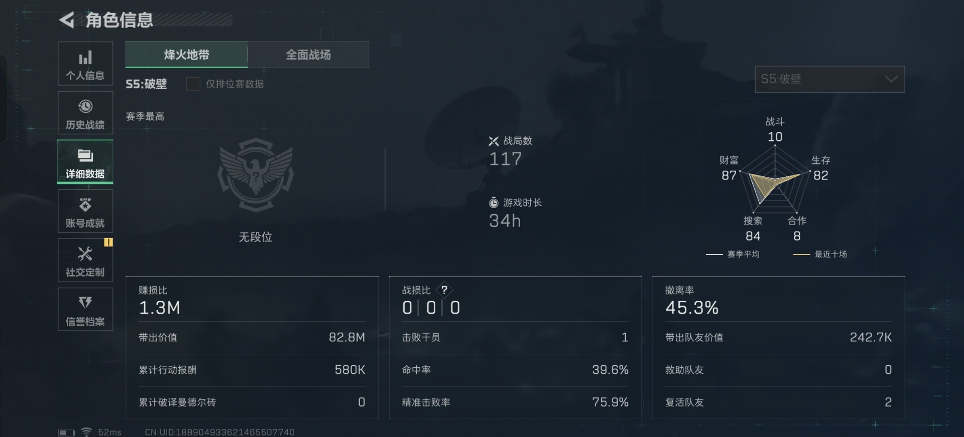 - [11527559]总资产:175.9M 1干员外观 1近战传说 14传说枪械 哈夫币:12.335K 高级安全箱(9.17到期) 可二次 可修改实名 优质装备:近战-北极星 烽火地带段位:黄金 全面战场段位:无段位 传说武器皮肤:M4A1突击步枪-阿米娅,CAR-15突击步枪-阿米娅,复合弓-黑-天际线,AWM狙击步枪-捞点薯条,QCQ171冲锋枪-北极星,腾龙突击步枪-捞点薯条,93R-捞点薯条,AK-12突击步枪-特斯拉线圈,SR-3M紧凑突击步枪-特斯拉线圈,UZI冲锋枪-特斯拉线圈,勇士冲锋枪-能天使-午夜邮差,725双管霰弹枪-送葬人-无题密令,K437突击步枪-北极星 史诗武器皮肤:PKM通用机枪-蝮蛇,PKM通用机枪-荒野求生,SR-3M紧凑突击步枪-荒野求生,SV-98狙击步枪-林中猎手,SVD狙击步枪-荒野求生,AS Val突击步枪-典狱官,SCAR-H战斗步枪-囚徒,腾龙突击步枪-无垢,PSG-1射手步枪-无垢 干员外观:蜂医-送葬人·无题密令(S5)