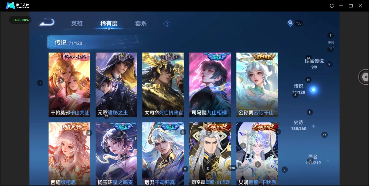 - [11525960]司空震蛇年限,霜月吟,-可二次-122英雄-149皮肤-5传说-48史诗 女武神-艾琳 街头霸王-韩信