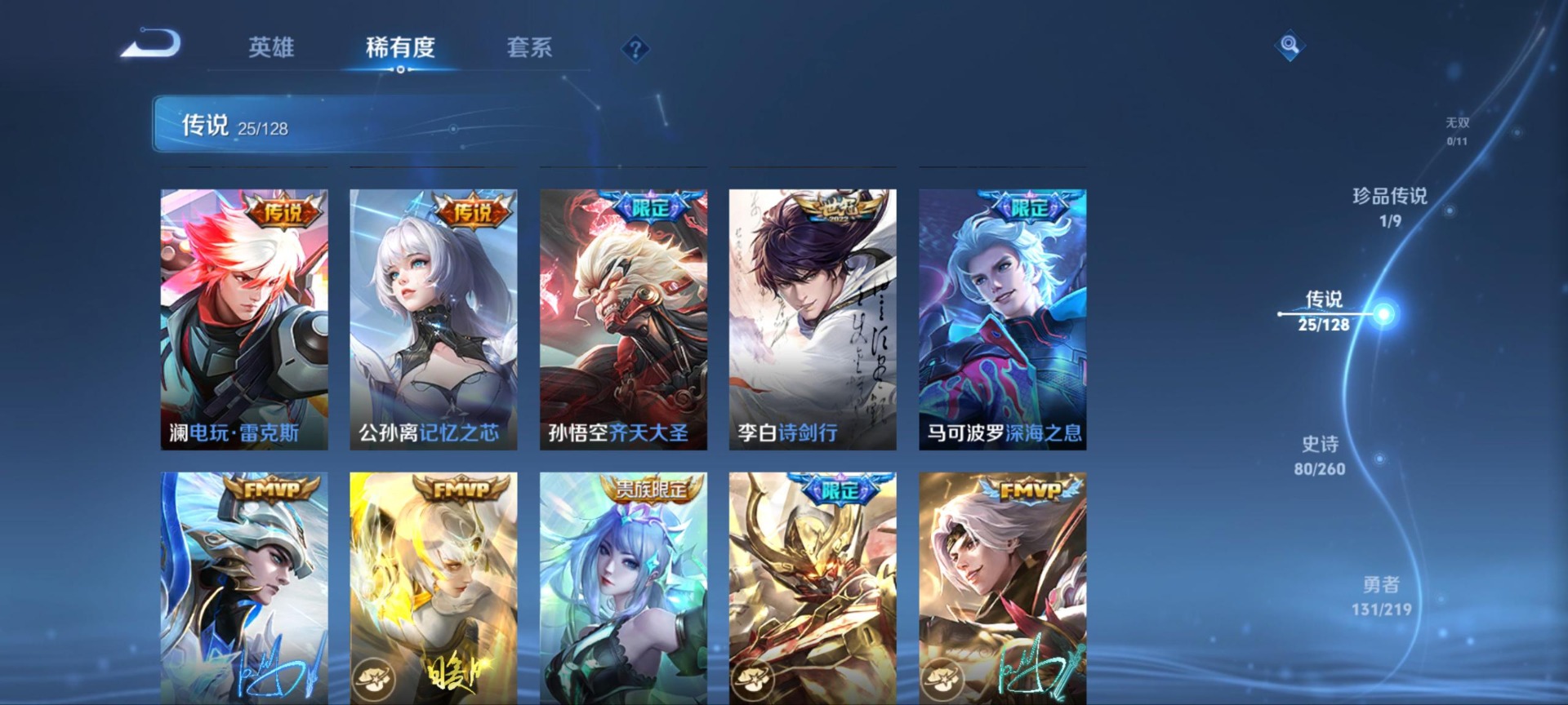 - [11658170]V9 3典藏 1珍品传说 9传说 123英雄 356皮肤 可修改实名 女号 荣耀水晶:全息碎影(猴子典藏),天鹅之梦(小乔典藏),星域神启(倪克斯贼亮) 珍品传说:酷洛米之心 传说皮:幻光神枪,黄金射手座,零号·赤焰,末日机甲-孙尚香(绿蚂蚱),久胜战神,超时空战士-狄仁杰 珍宝阁皮:蔷薇恋人,玩趣恶龙 限定皮:逐霄战戟,异界灵契(白毛香),五谷丰年,青龙志(铠年限),游园惊梦,李小龙,奇迹圣诞,默契交锋-兰陵王,孙行者,猪悟能,玉兔公主 史诗皮:茶境仙,苍鳞隐世,鸭鸭历险记-刘禅,灵蛊蚀心,龙之律动,石田雨龙,百相守梦-百里守约,芈月浮光幕影,怒海争锋,化蝶舞,紫霞仙子,苍穹之光,电玩小子(小书包),白龙吟,黄金分割率,特工魅影,千年之狐,江河有灵,百解令(蒙犽),匿光破解者,蒙恬荣光圣徽,冰冠公主,偶像歌手,魅语,暗夜猫娘,龙骑士(小龙虾),末日机甲-吕布,猫狗日记-孙策,猫狗日记-大乔,时之恋人-孙尚香,乱世虎臣,节奏热浪,修罗,女仆咖啡,摇滚巨星,水果甜心,绅士熊喵,天才门将,星夜王子,心灵骇客,功夫厨神,德古拉伯爵,暗隐猎兽者,幽灵船长,鬼剑武藏,心灵战警,乐园奇幻夜,天秀·启明,舞动绿茵,地狱岩魂,诗语江南,纤云弄巧,繁星吟游(呼啦呼啦),拒霜思,缤纷独角兽,乘风破浪,逐浪之夏,龙鼓争鸣,月团寄思,水晶猎龙者,曙光守护者,箭羽风息,金属风暴,圣诞狂欢,圣诞恋歌,鹰眼统帅,王者之锤,暗夜贵公子,魅力维加斯,千筹问战,无心