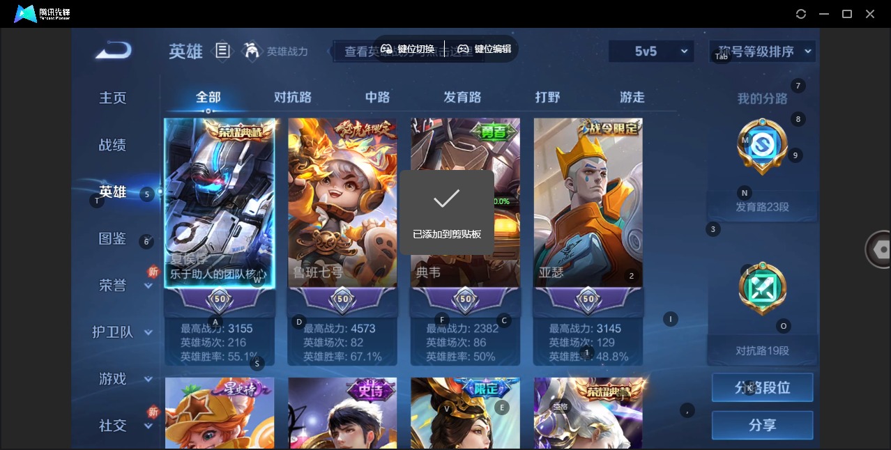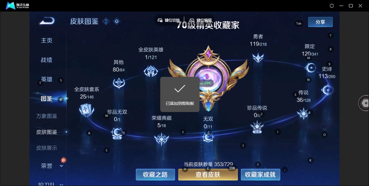 - [12297524]V7 1典藏 4传说 123英雄 253皮肤 可修改实名 优质装备:鸣剑·曳影,黄金狮子座,一念神魔,山海·炽霜斩(李信年限) 珍宝阁皮:胡桃夹子,蔷薇恋人,女武神 限定皮:鸣野蒿,至尊宝,高山流水,匿光决锋者,五谷丰年,青龙志(铠年限),李小龙,逐梦之影,朱雀志(守约年限),孙行者,猪悟能 史诗皮:星界战将,紫霞仙子,苍穹之光,白龙吟,黄金分割率,特工魅影,千年之狐,永昼,蒙恬荣光圣徽,晚萤,无限星赏官,冰冠公主,偶像歌手,百相守梦(刘备),末日机甲-吕布,猫狗日记-孙策,乱世虎臣,节奏热浪,修罗,女仆咖啡,水果甜心,星夜王子,心灵骇客,德古拉伯爵,暗隐猎兽者,幽灵船长,鬼剑武藏,心灵战警,地狱岩魂,纤云弄巧,繁星吟游(呼啦呼啦),拒霜思,缤纷独角兽,乘风破浪,逐浪之夏,月团寄思,水晶猎龙者,金属风暴,原初追逐者,圣诞狂欢,圣诞恋歌,鹰眼统帅,王者之锤,暗夜贵公子,魅力维加斯,黎明之约,天秀·音浪,无心,未来纪元-赵云,玫瑰异探