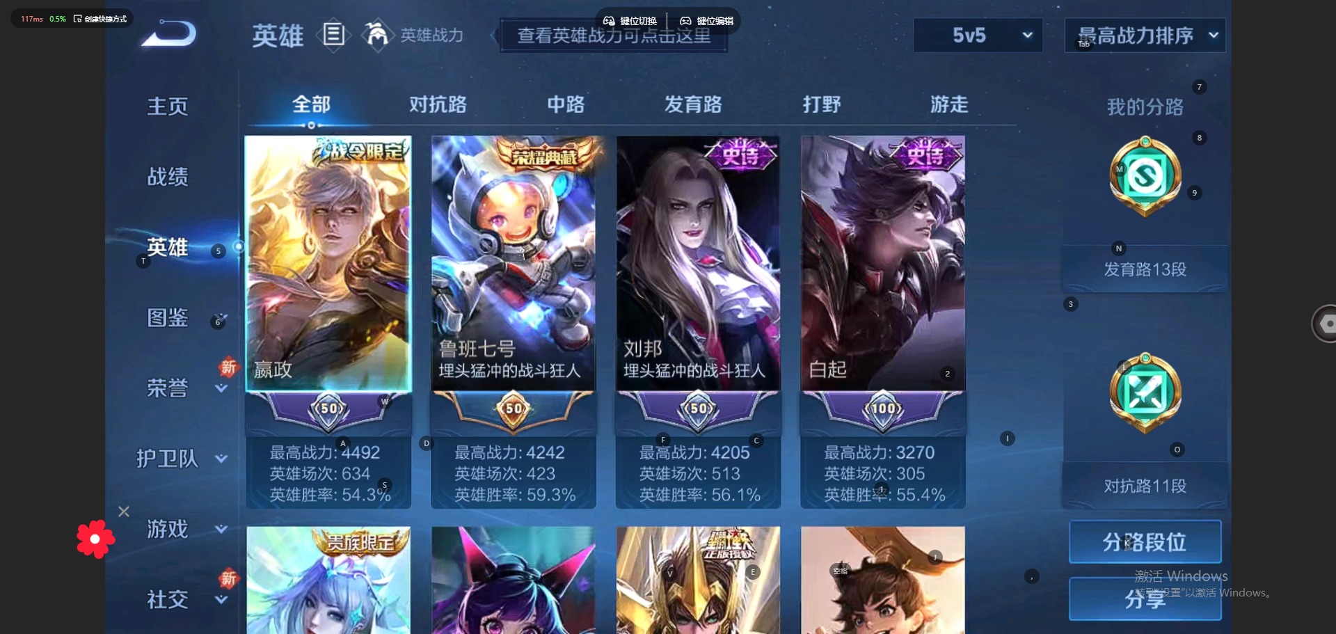 - [11470525],-不可二次-120英雄-118皮肤-1传说-20史诗 街头霸王-韩信
