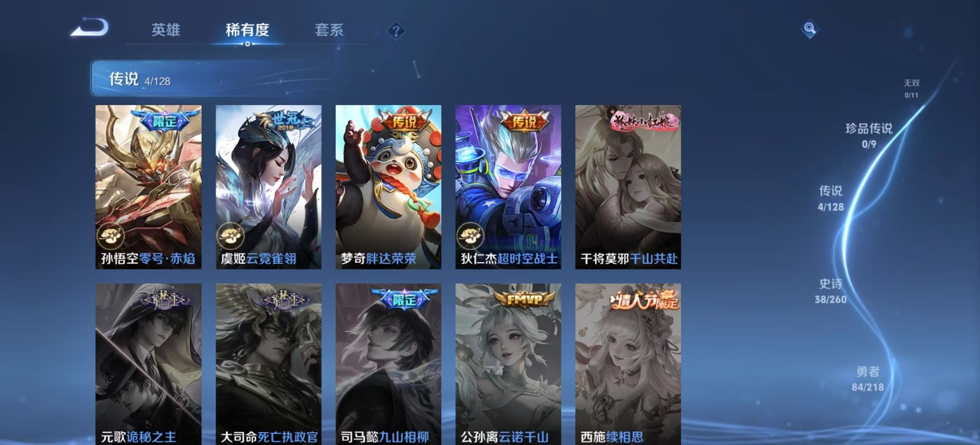 - PX_2081154-实名: 可修改 贵族等级: V6 英雄数: 123 皮肤数: 184 传说皮: 绛天战甲 限定皮: 遇见飞天,李小龙,梁祝,时雨天司,飞衡,至尊宝,五谷丰年