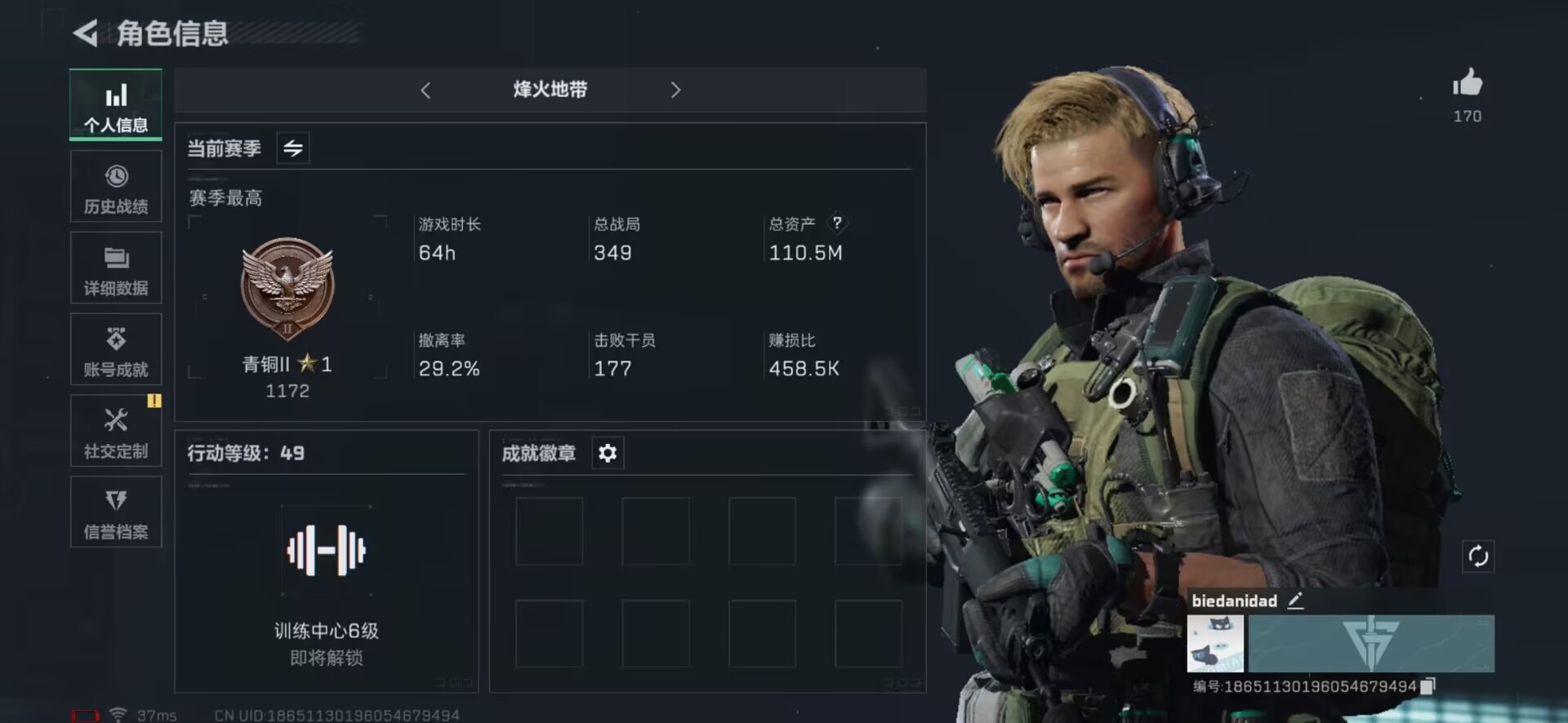 [11608990]总资产:110.5M 3传说枪械 哈夫币:95.079K 进阶安全箱(2×2)9.15号到期 可二次 可修改实名 烽火地带段位:青铜 全面战场段位:列兵 传说武器皮肤:勇士冲锋枪-能天使-午夜邮差,复合弓-黑-天际线,CAR-15突击步枪-阿米娅 史诗武器皮肤:M250通用机枪-囚徒,SV-98狙击步枪-林中猎手