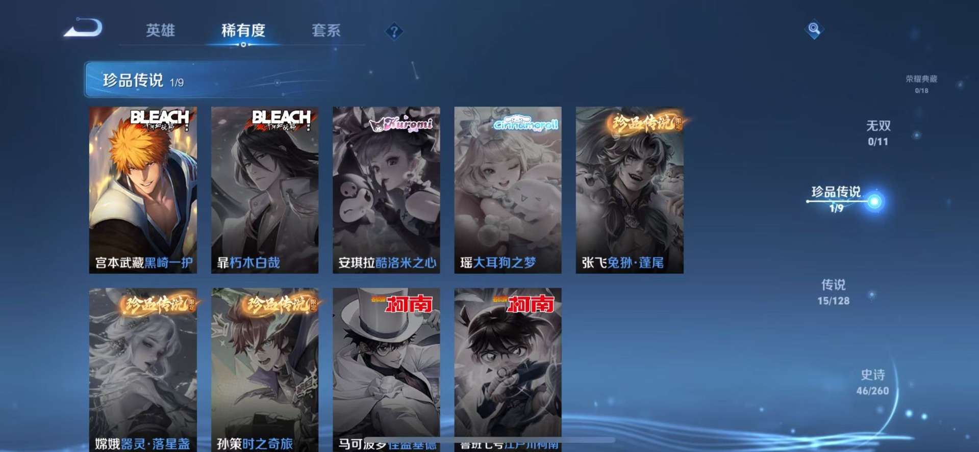 [11609013]V7 1珍品传说 15传说 123英雄 141皮肤 可修改实名 优质装备:黑崎一护,黄金狮子座,炽阳神光,一念神魔,末日机甲-孙尚香(绿蚂蚱),地狱之眼,胖达荣荣,时之恋人-刘备(电焊工),无双飞将,山海·苍雷引(电光曜子),记忆之芯(机甲兔),夜礼服假面,涂山容容 传说皮:祥瑞亨通 珍宝阁皮:玩趣恶龙 限定皮:白虎志(电光耗子),前尘镜,白晶晶,诗剑行,五谷丰年,孙行者,山海·玄木吟(马可年限) 史诗皮:鸭鸭历险记-刘禅,龙之律动,芈月浮光幕影,琥珀纪元伽罗,蔬乡物语(鲁班七号),超元猎域,紫霞仙子,千年之狐,江河有灵,魅语,高渐离燃音魔法,蒙恬荣光圣徽,偶像歌手,白蛇,晚萤,末日机甲-吕布,节奏热浪,水果甜心,天才门将,心灵骇客,暗隐猎兽者,幽灵船长,鬼剑武藏,暗渊魔法,天秀·启明,舞动绿茵,地狱岩魂,缤纷独角兽,乘风破浪,水晶猎龙者,圣诞恋歌,鹰眼统帅,赏金猎手,无心