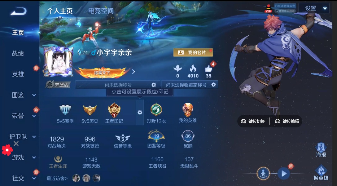 - [36843]英雄数: 83 勇者皮肤数: 46 史诗皮肤数: 10 传说皮肤数: 1 稀有英雄: 艾琳,娜可露露,不知火舞,桑启,戈娅 当前段位: 王者 限定皮肤: 高山流水,五谷丰年 内测皮肤: 女武神 史诗皮肤: 逐浪之夏,水果甜心,乘风破浪,水晶猎龙者 赛季/战令皮肤: 朔风刀,混沌棋,疑决卦,醍醐杖,原初探秘者,万华元夜,演武夺筹,驱傩正仪,千军破阵,星际陆战队(达摩),金庭之子,大漠名商,云中旅人,海盐诗旅 实名: 无人脸修改机会/实名是本人 普通皮肤: 五福同心,龙腾万里,归虚梦演(曜),掌控之力,守护之力,化身博士,缤纷绘卷,黄金武士,天使之翼,红桃皇后,星际陆战队(程咬金),阴阳师,汉昭烈帝,兔女郎,死亡骑士,救世之瞳,白色死神,野性能量,冰雪圆舞曲,露花倒影,花见巫女,未来旅行,龙域领主,蔷薇王座,万圣前夜,异域舞娘,潮流仙人,东海龙王,战争女神,精灵王,死神来了,赤焰之缨,启蛰,棒球奇才,海之征途,精准探案法,花间舞,绝影神枪,阿摩司公爵,特种部队,隐刃,木偶奇遇记,海军大将,一千零一夜,英喵野望,前尘,碧珀绯影