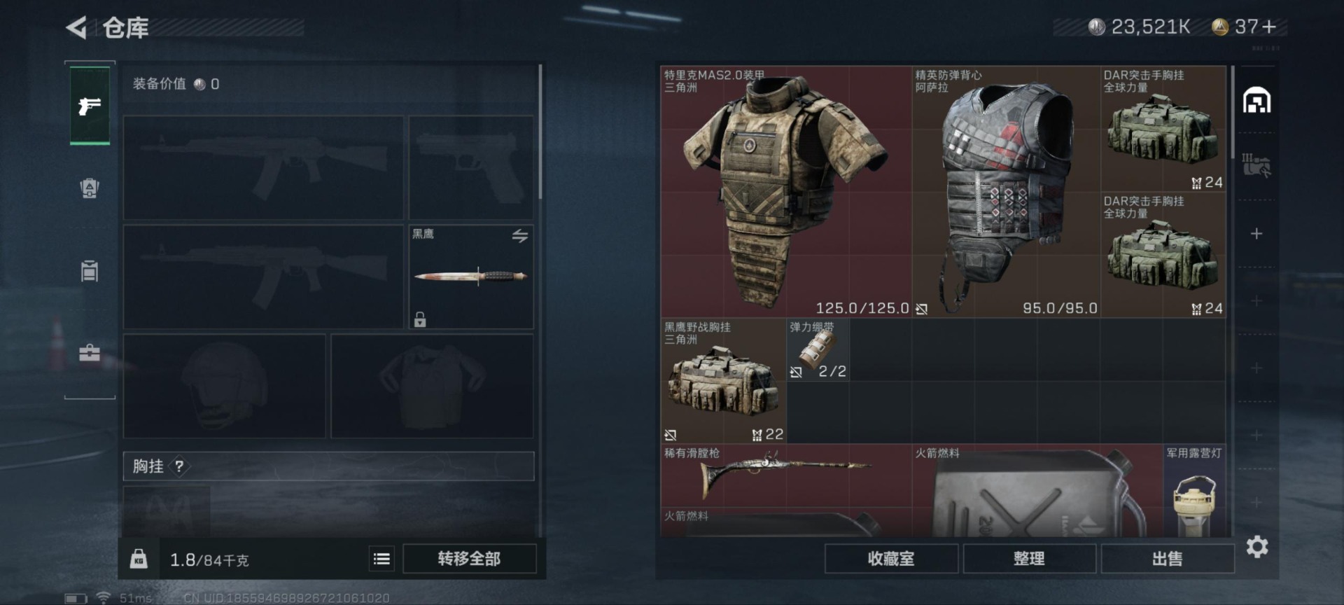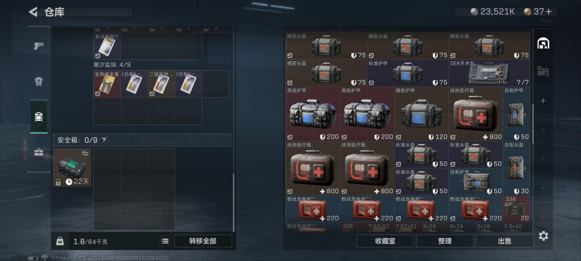 [11609220]总资产:102M 1干员外观 8传说枪械 哈夫币:23.521K 顶级安全箱(3×3)9.15号到期 可二次 可修改实名 优质装备:顶级安全箱(3x3) 烽火地带段位:铂金 全面战场段位:校官 传说武器皮肤:M4A1突击步枪-阿米娅,CAR-15突击步枪-阿米娅,复合弓-黑-天际线,AWM狙击步枪-捞点薯条,腾龙突击步枪-捞点薯条,93R-捞点薯条,勇士冲锋枪-能天使-午夜邮差,725双管霰弹枪-送葬人-无题密令 史诗武器皮肤:M16A4突击步枪-竞赛选手,PKM通用机枪-荒野求生,勇士冲锋枪-深海恐惧,SR-3M紧凑突击步枪-荒野求生,SV-98狙击步枪-林中猎手,SVD狙击步枪-荒野求生,AS Val突击步枪-典狱官,M250通用机枪-囚徒,SV-98狙击步枪-囚徒,SCAR-H战斗步枪-囚徒,腾龙突击步枪-无垢,MP7冲锋枪-无垢,PSG-1射手步枪-无垢,Vector冲锋枪-阿萨拉文明,S12K霰弹枪-曙光 干员外观:蜂医-送葬人·无题密令(S5)