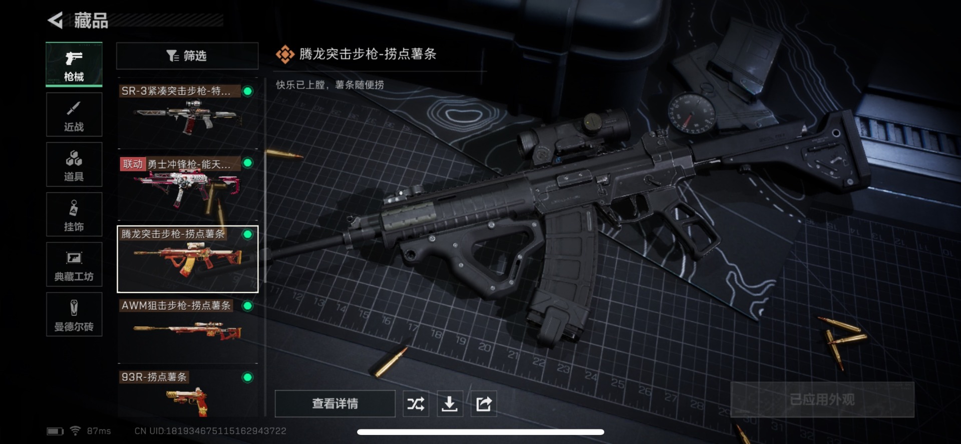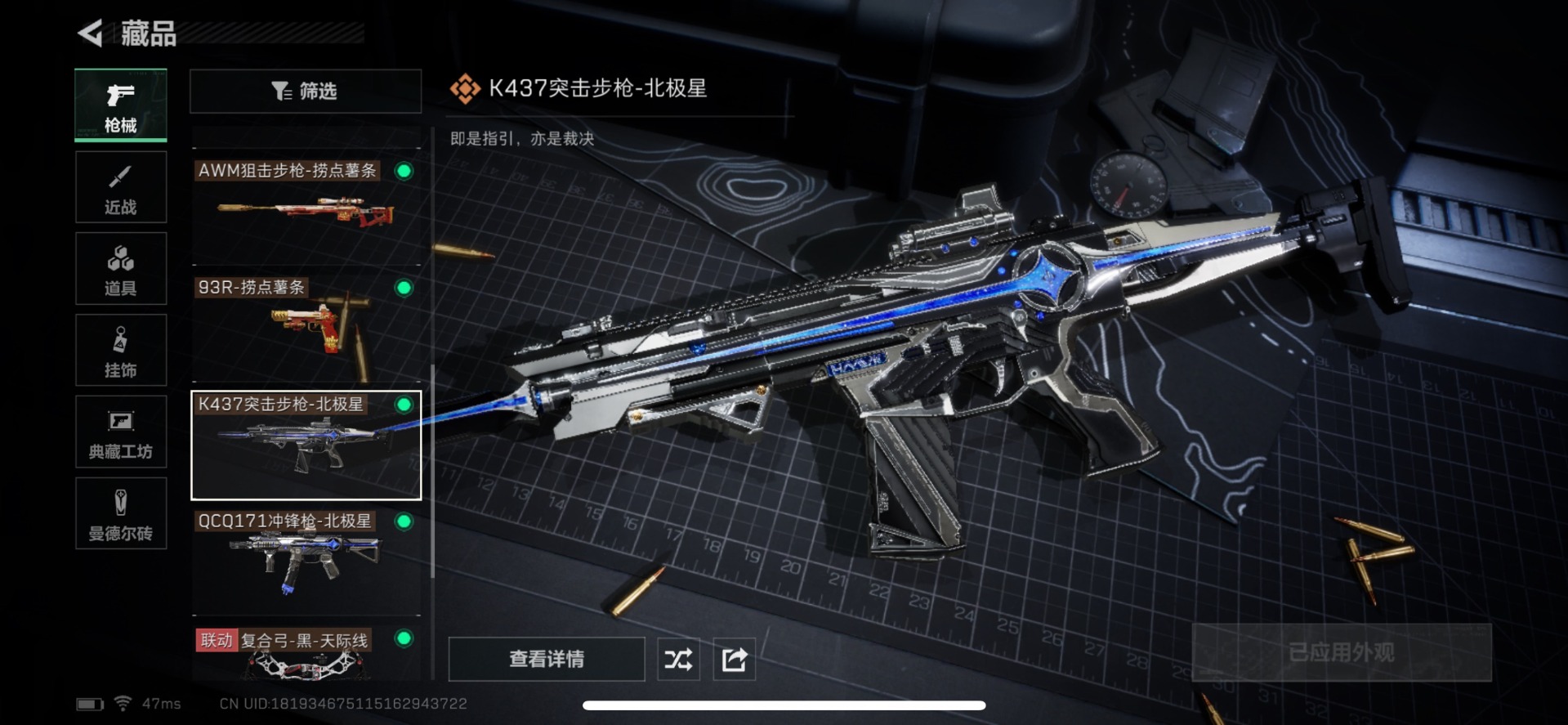[11609242]总资产:172M 2近战传说 15传说枪械 哈夫币:75.406K 高级安全箱(2×3)9.15号到期 可二次 可修改实名 优质装备:近战-黑海,近战-北极星 烽火地带段位:钻石 全面战场段位:无段位 传说武器皮肤:AK-12突击步枪-夜鹰,AWM狙击步枪-捞点薯条,腾龙突击步枪-捞点薯条,AK-12突击步枪-特斯拉线圈,CAR-15突击步枪-阿米娅,SR-3M紧凑突击步枪-特斯拉线圈,UZI冲锋枪-特斯拉线圈,勇士冲锋枪-能天使-午夜邮差,复合弓-黑-天际线,M4A1突击步枪-阿米娅,725双管霰弹枪-送葬人-无题密令,K437突击步枪-北极星,QCQ171冲锋枪-北极星