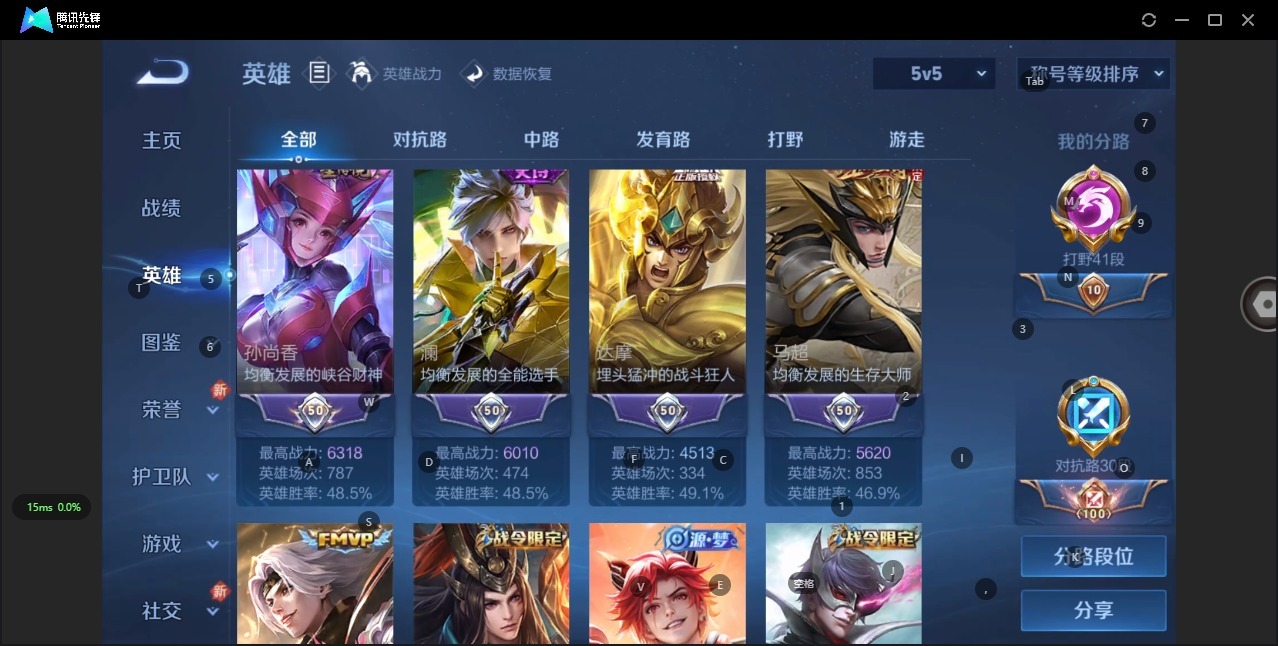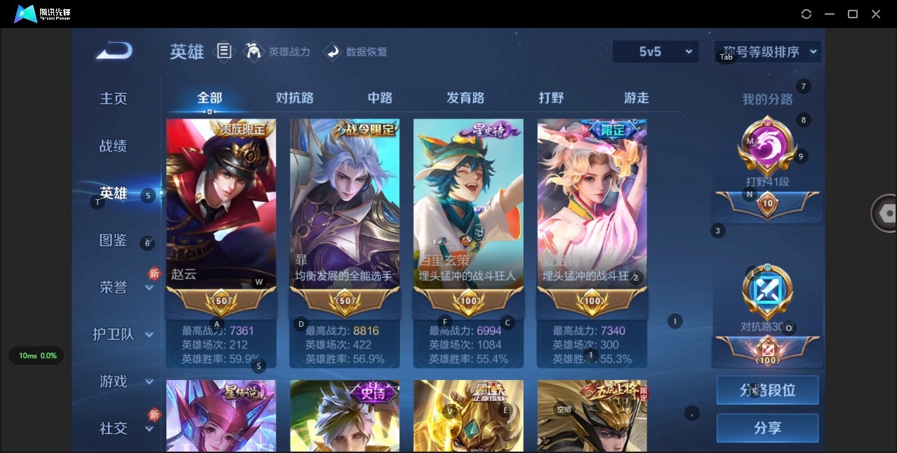 - PX_2096852-实名: 可修改 贵族等级: V5 英雄数: 123 皮肤数: 118 荣耀水晶: 幻阙歌 限定皮: 鸣野蒿,逐霄战戟,愿照·众生和