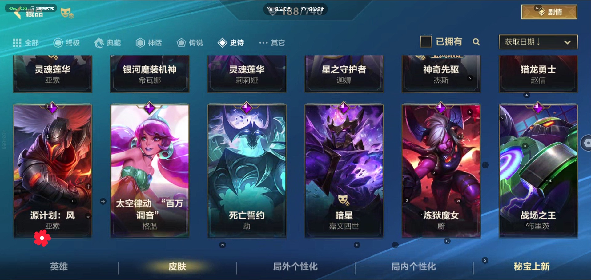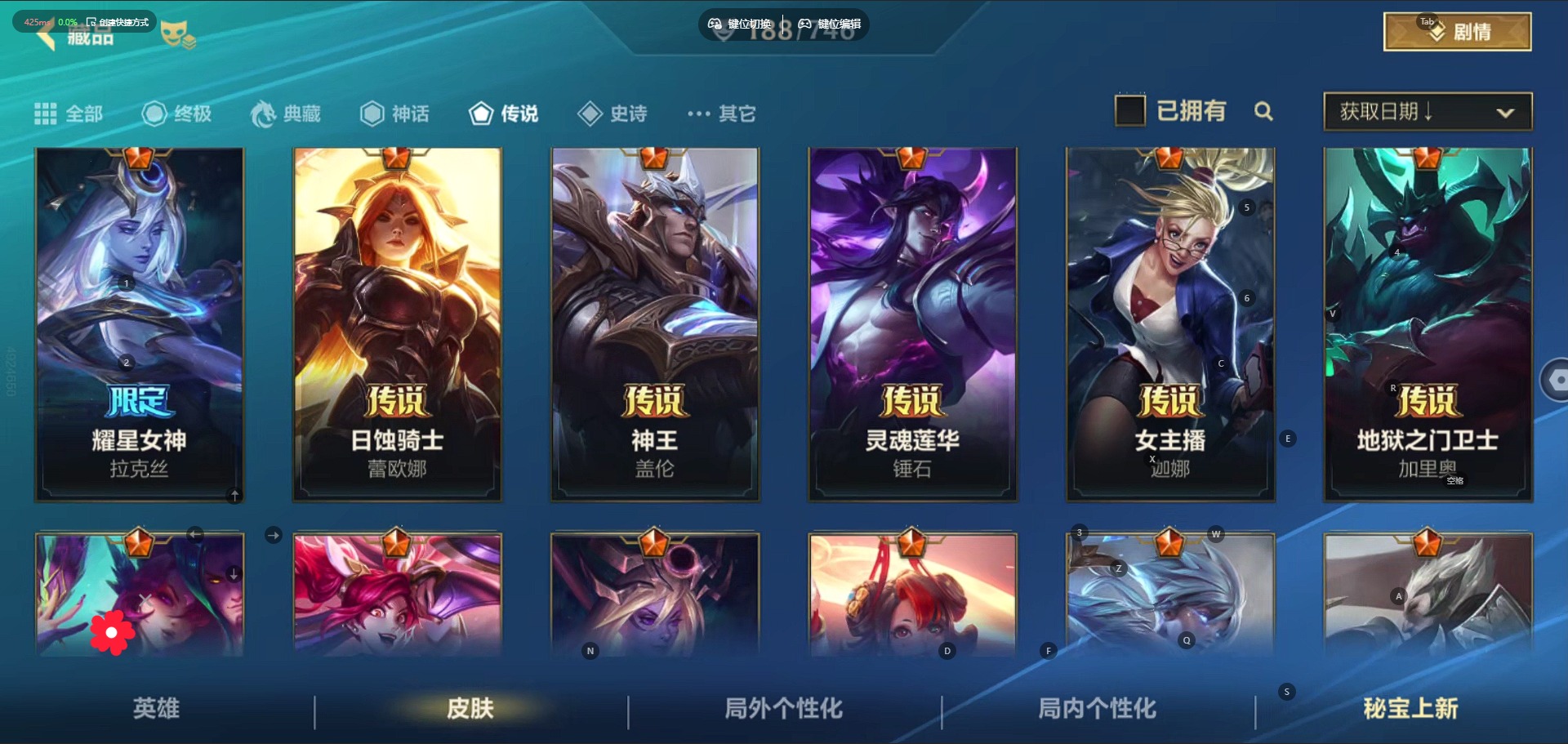 - [12259009]V6 6传说 123英雄 175皮肤 可修改实名 优质装备:画中仙,涂山容容 传说皮:祥瑞亨通,幻光神枪 珍宝阁皮:万物之道,蔷薇恋人 限定皮:愿照·九州拓(澜年限),愿照·山河定(司空震年限),逐霄战戟,鸣野蒿,五谷丰年,梁祝,李小龙,孙行者,大圣娶亲 史诗皮:鸭鸭历险记-刘禅,器灵·浮梦炉,化蝶舞,星界战将,龙之律动,雪豹·霜爪,石田雨龙,茶境仙,百相守梦-黄忠,紫霞仙子,电玩小子(小书包),白龙吟,黄金分割率,特工魅影,江河有灵,冰冠公主,猫狗日记-大乔,乱世虎臣,女仆咖啡,水果甜心,心灵骇客,暗隐猎兽者,鬼剑武藏,乐园奇幻夜,天秀·启明,地狱岩魂,纤云弄巧,拒霜思,缤纷独角兽,乘风破浪,箭羽风息,金属风暴,鹰眼统帅,魅力维加斯