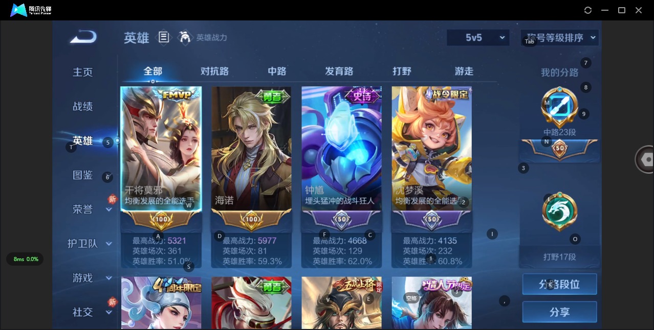 - [11883544]V7 1典藏 1珍品传说 7传说 123英雄 208皮肤 可修改实名 优质装备:神鉴启示录,怪盗基德,炽阳神光,末日机甲-孙尚香(绿蚂蚱),超时空战士-狄仁杰,无双飞将,记忆之芯(机甲兔) 珍宝阁皮:妄想食味 限定皮:逐霄战戟,陌上桑,鸣野蒿,李小龙,寅虎·赤拳(老虎年限) 史诗皮:化蝶舞,星界战将,谪仙醉月,龙之律动,石田雨龙,茶境仙,怒海争锋,炽弈燎原,破空之剑,东方月初,埋骨钱,百相守梦-百里守约,百相守梦-黄忠,紫霞仙子,千年之狐,江河有灵,百解令(蒙犽),蒙恬荣光圣徽,无限星赏官,冰冠公主,偶像歌手,白蛇,猫狗日记-孙策,乱世虎臣,修罗,女仆咖啡,摇滚巨星,水果甜心,星夜王子,德古拉伯爵,幽灵船长,鬼剑武藏,天秀·启明,纤云弄巧,缤纷独角兽,乘风破浪,逐浪之夏,月团寄思,水晶猎龙者,曙光守护者,箭羽风息,原初追逐者,圣诞恋歌,鹰眼统帅,王者之锤,魅力维加斯,黎明之约