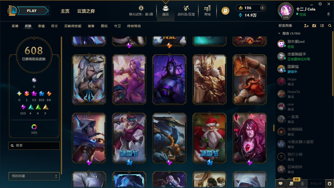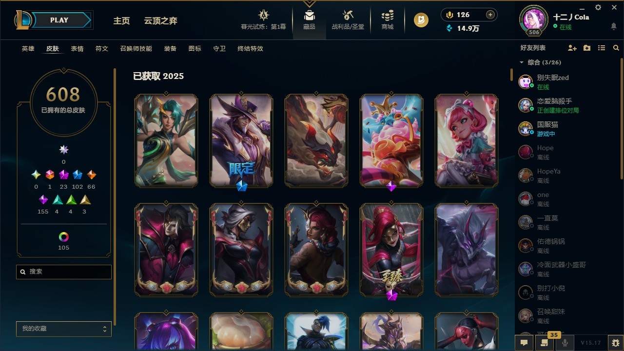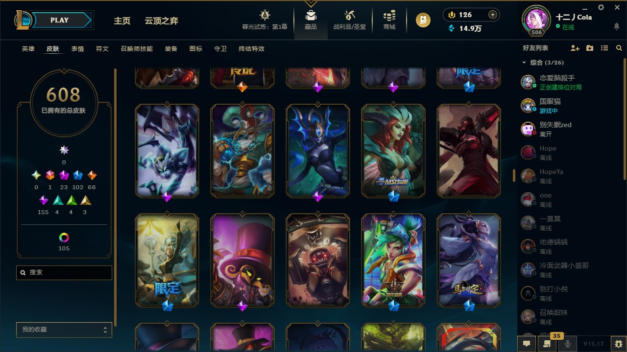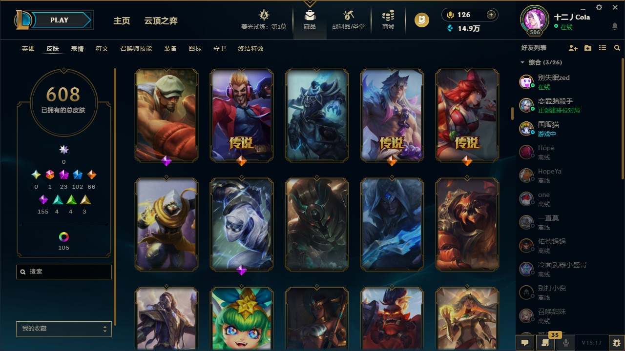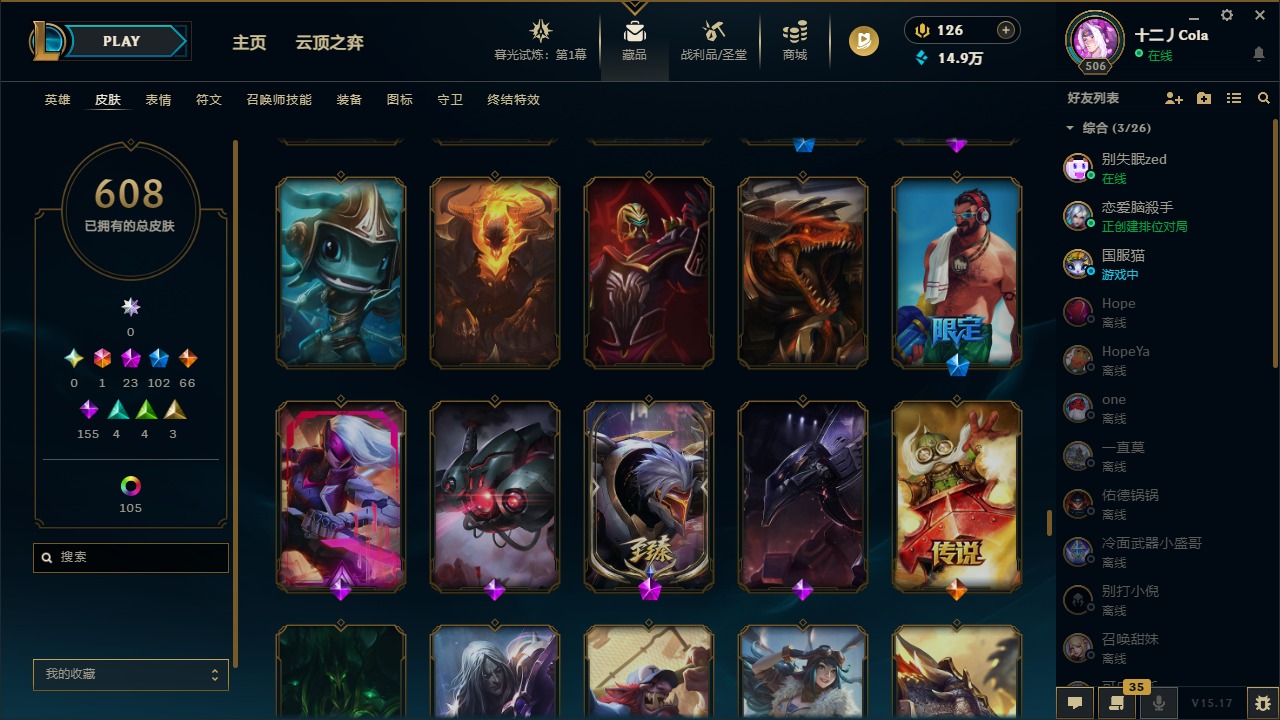 [11610281]1终极 23神话 103限定 67传说 155史诗 608皮肤 136炫彩 170英雄 可二次 可修改实名 优质装备:至臻 源计划:正义 艾瑞莉娅,至臻 腥红之月 亚托克斯,至臻 烈焰美人 薇恩,至臻 黑夜使者 李青,至臻 玉剑传说 武剑仙,至臻 K/DA 卡莎,至臻 真实伤害 奇亚娜,至臻 K/DA 阿卡丽,至臻 K/DA 伊芙琳,至臻 源计划:阴 劫,至臻 神龙尊者 炎龙瑟提,至臻 魅惑女巫 莫甘娜,源代码 乐芙兰,防爆天使 凯尔,暗影 沃里克,巧克力工坊 波比,地底世界 崔斯特,电玩战魂 人马,都铎王朝 图奇,防爆士兵 格雷福斯,冠军典狱长 锤石,冠军之血 希瓦娜,鸡里奥,惊悚派对 阿木木,克格汪 克格莫,密林猎手 提莫,送披萨的小姐姐 希维尔,野兽猎人 德莱文,野兽猎人 泰达米尔,永恒之森 乐芙兰,勇者 奈德丽,御魔星矢 寒冰,未来战士,冰霜之刃 艾瑞莉娅 炫金,霸天巨兽·雪崩 墨菲特,冰雪节 格雷福斯 炫金,净雪之月 莫甘娜 冬虹,墨之影武者 亚索 金墨耀影,殿堂传奇 乐芙兰 登神,殿堂传奇 乐芙兰,十五周年纪念 希维尔,暗星 科加斯,心之钢 伊泽瑞尔 天纵才华,魔女 阿卡丽 虚荣,至臻 黑色玫瑰假面舞会 卡特琳娜 至臻:殿堂传奇 乐芙兰 海克斯:海克斯 嘉文四世,海克斯 安妮,海克斯 雷克顿,海克斯 斯维因 限定:钢铁军团 拉克丝 赛季限定皮:胜利之运 崔斯特,胜利剑圣 易,胜利女神 娑娜,胜利女神 蜘蛛,胜利女神 希维尔,胜利之树 茂凯,胜利枪神 格雷福斯,胜利女神 奥利安娜,胜利之剑 剑魔,胜利枪神 卢锡安,胜利机器人 布里茨 冠军限定系列:S1FNC 酒桶,S1FNC 迦娜,S2 暗杀星 蒙多,S2 暗杀星 努努,S2 暗杀星 慎,S3 SKT T1 劫,S3 SKT T1 薇恩,S3 SKT T1 婕拉,S4 SSW 锤石,S4 SSW 雷恩加尔,S4 SSW 图奇,S4 SSW 炼金,S5 SKT T1 阿利斯塔,S5 SKT T1 瑞兹,S5 SKT T1 阿兹尔,S5 SKT T1 蜘蛛,S6 SKT T1 奥拉夫,S6 SKT T1 烬,S6 SKT T1 球女,S6 SKT T1 扎克,S8 IG 艾瑞莉娅 冰雪节限定:冰雪节 格雷福斯,冰雪节 炼金,冰雪女神 辛德拉,冰雪兽 纳尔,胡桃夹子 小丑,平安夜女神 娑娜,魄罗骑士 瑟庄妮,圣