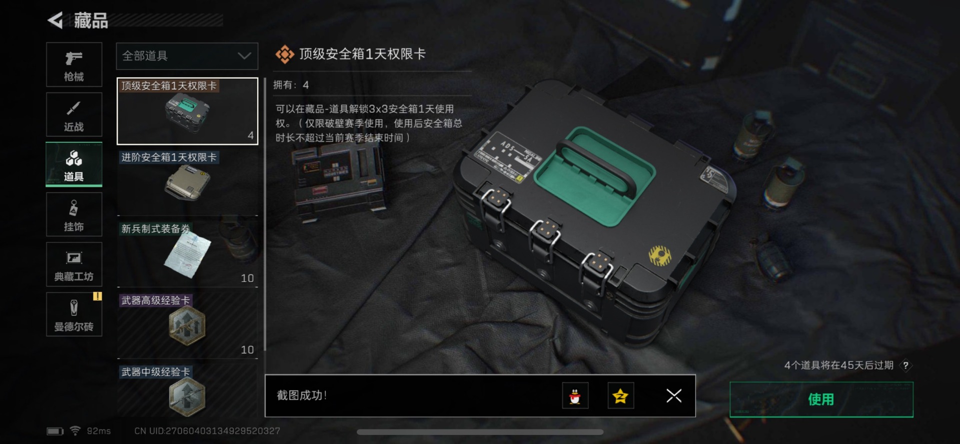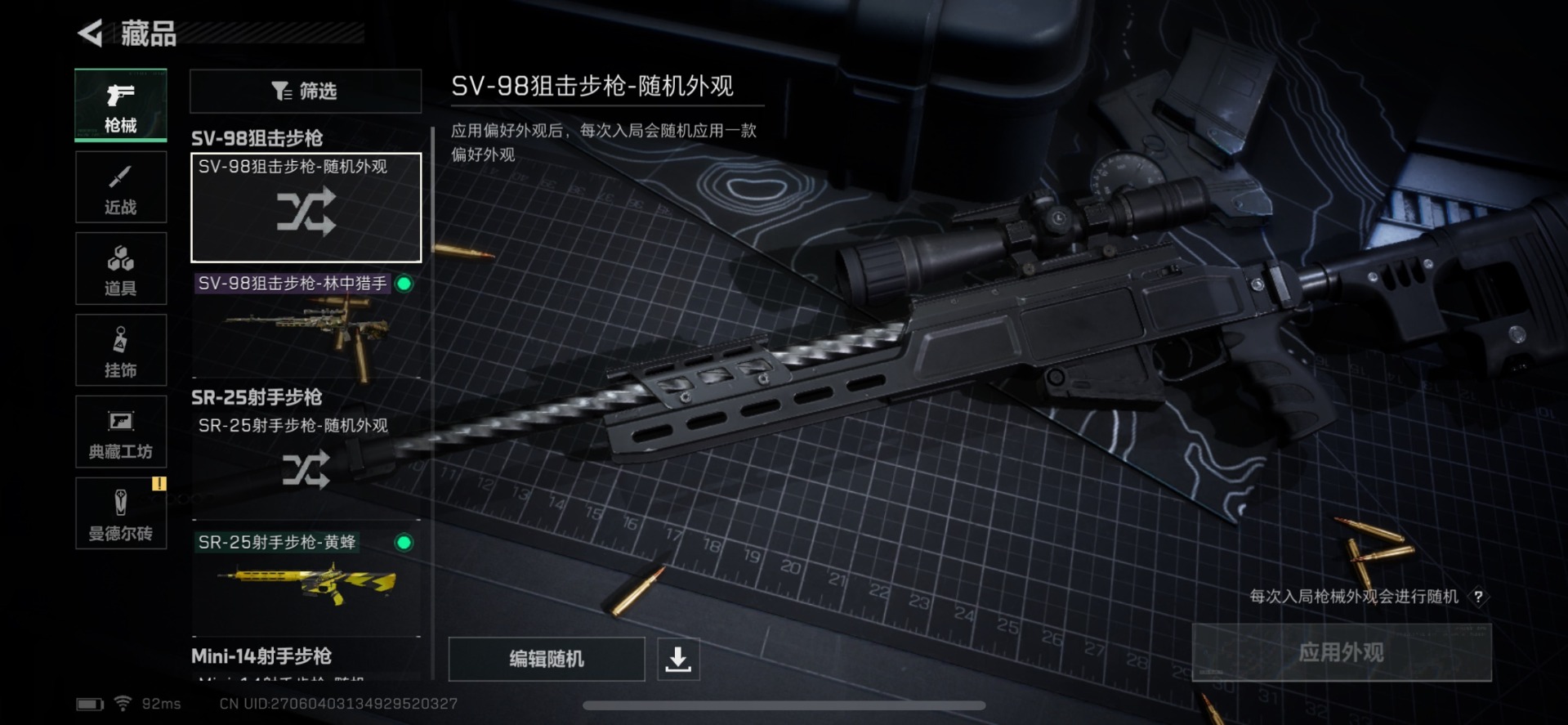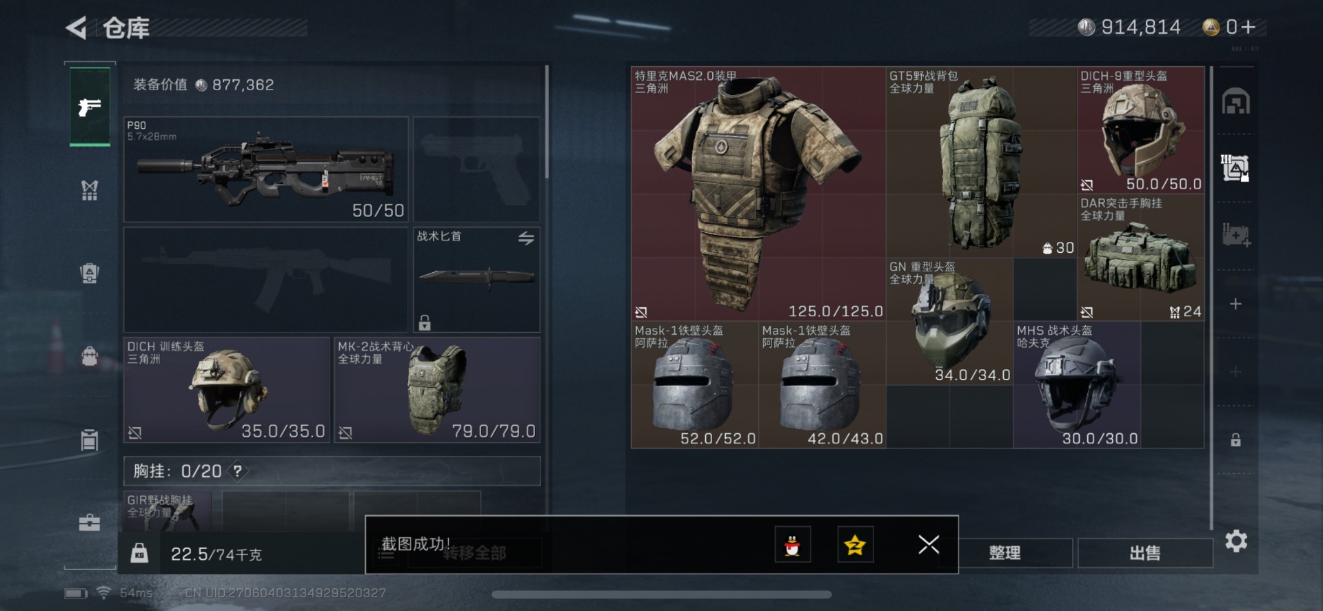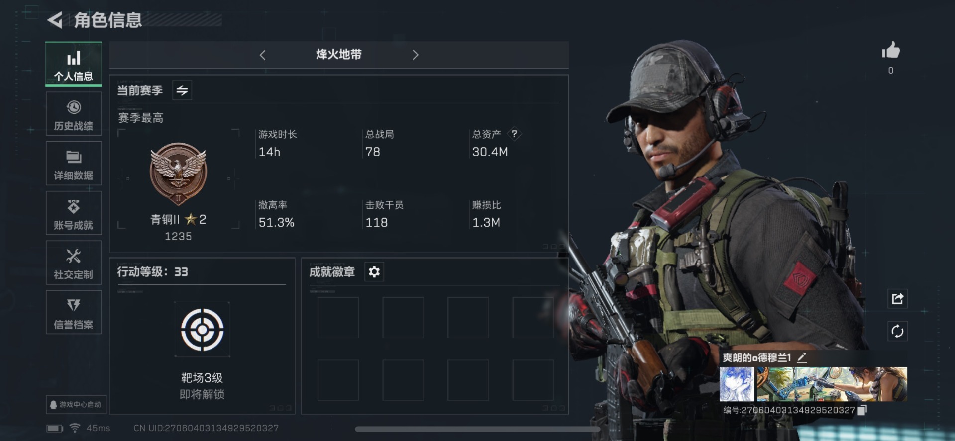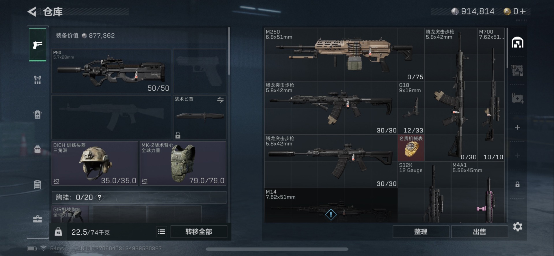 - [10444213]总资产110M,哈夫币3891w,枪皮数量91,战场等级:50 将军,行动等级:60 铂金,近战-黑鹰