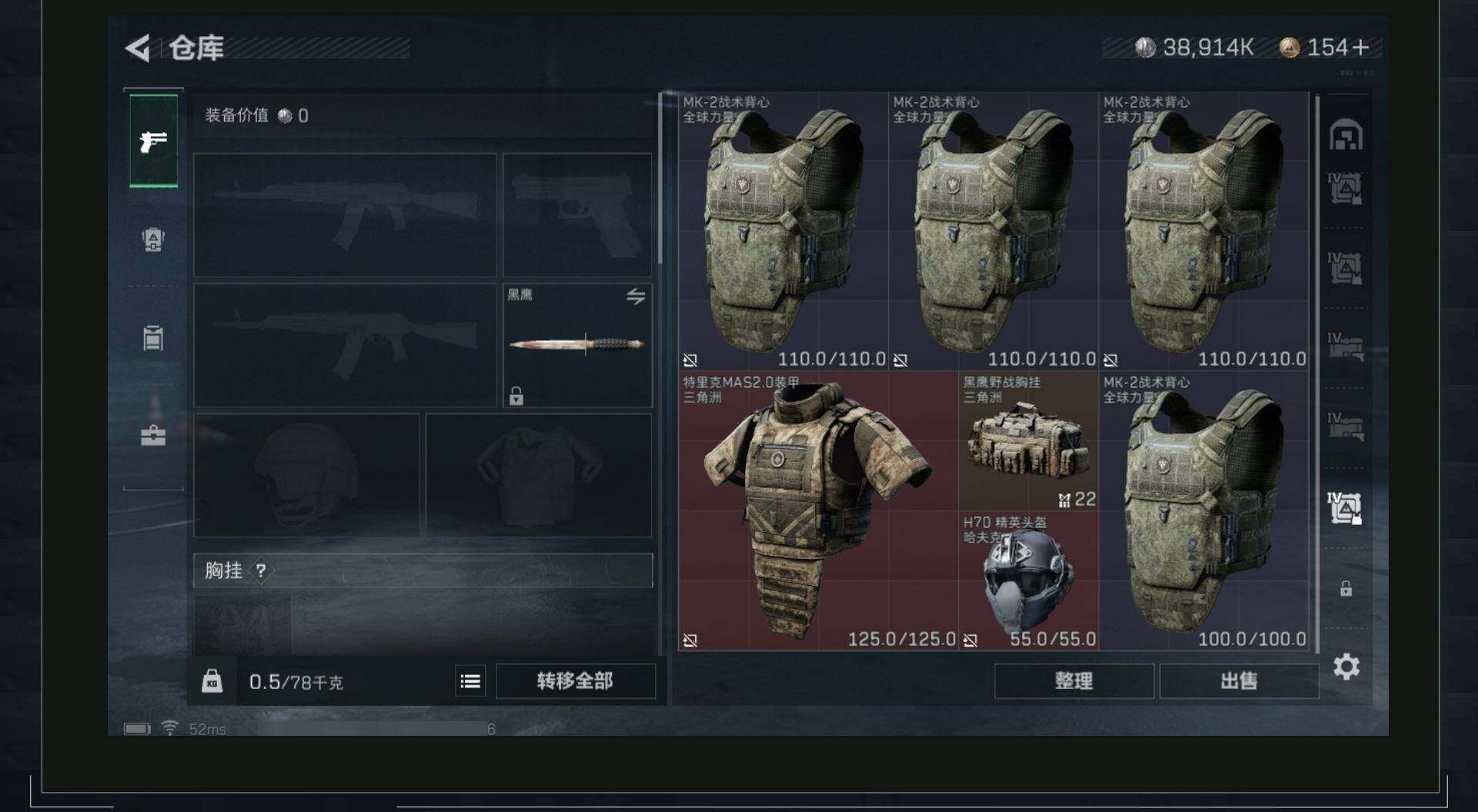 [11616796]总资产110M,哈夫币3891w,枪皮数量91,战场等级:50 将军,行动等级:60铂金,近战-黑鹰,安全箱等时效性道具请以游戏内数据为准-S62