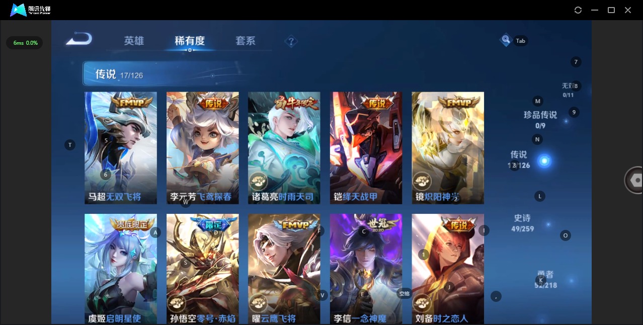 - PX_2106446-Q/非凡王者/176皮肤/125英雄/0典藏/0珍品无双/0无双/0珍品传说/6传说/50史诗/9稀有英雄 【6 传说皮肤】逐花归海 澜,无双飞将 马超,祈雪灵祝 公孙离,炽阳神光 镜,愿照·九州拓 澜,鸣野蒿 桑启, 【50 史诗皮肤】百解令 蒙犽,匿光追影者 镜,暗渊魔法 司马懿,妄想食味 姬小满,德古拉伯爵 刘邦,山海·玄木吟 马可波罗,五谷丰年 鬼谷子,鬼剑武藏 宫本