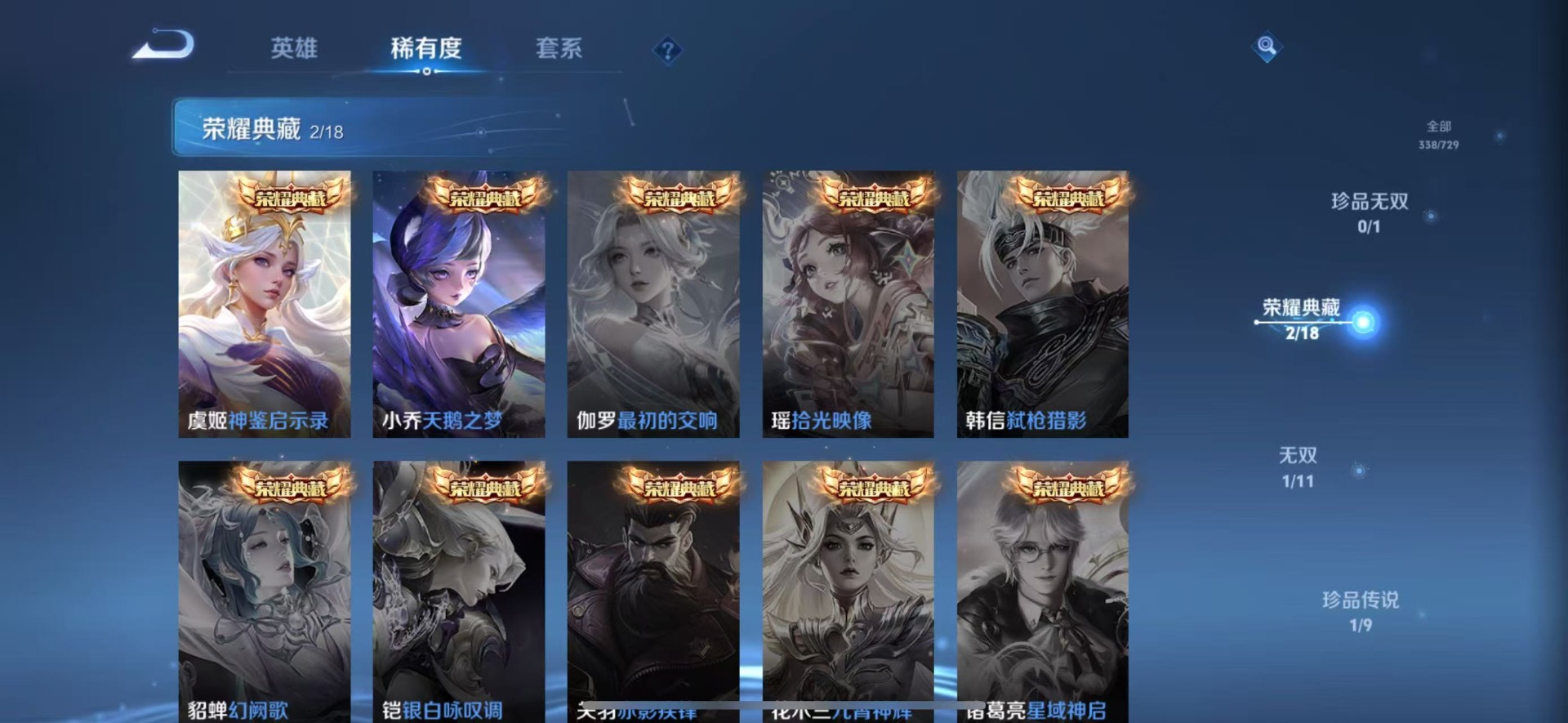 [11608823]V8 2典藏 1无双 1珍品传说 23传说 125英雄 338皮肤 可修改实名 优质装备:天鹅之梦(小乔典藏),神鉴启示录,小乔时之魔女(小乔无双),冠军飞将,仲夏夜之梦(大飞蛾),音你心动-小乔,飞鸢探春,音你心动-周瑜,乞巧织情,游龙清影(小青龙),挚爱花嫁,无双飞将,山海·琳琅生(小乔年限),朵莉亚心动手记 珍品传说:兔狲·蓬尾 传说皮:幻光神枪 珍宝阁皮:妄想食味,胡桃夹子,优雅恋人 限定皮:愿照·岁时盈(虞姬年限),愿照·众生和(妲己年限),愿照·千秋盛(女娲年限),逐霄战戟,鸣野蒿,武陵仙君(小桃花),异界灵契(白毛香),补天,寅虎·展翼(孙膑年限),白鹤梁神女,遇见飞天,高山流水,五谷丰年,天狼运算者,梁祝,天狼溯光者,李小龙,霸王别姬-虞姬,纯白花嫁,冰霜恋舞曲,匿光追影者,女儿国国王,寅虎·瑞焰(虎皮蛋子),寅虎·心曲(虎婆),寅虎·赤拳(老虎年限),百木心枪,玉兔公主,深海之息(深海大菠萝),唐三藏,匿光启智者 史诗皮:鸭鸭历险记-刘禅,化蝶舞,龙之律动,石田雨龙,百相守梦-周瑜,茶境仙,怒海争锋,芈月浮光幕影,海诺心动手记,琥珀纪元伽罗,蔬乡物语(鲁班七号),乘龙·聚宝船(安琪拉年限),乘龙·忆丹青(大乔年限),百相守梦-百里守约,百相守梦-黄忠,紫霞仙子,苍穹之光,电玩小子(小书包),特工魅影,千年之狐,永昼,江河有灵,百解令(蒙犽),高渐离燃音魔法,蒙恬荣光圣徽,冰冠公主,青蛇,偶像歌手,白蛇,暗夜猫娘,龙骑士(小龙虾),末日机甲-吕布,猫狗日记-孙策,乱世虎臣,节奏热浪,女仆咖啡,摇滚巨星,水果甜心,绅士熊喵,天才门将,星夜王子,心灵骇客,时之奇旅-安琪拉,功夫厨神,德古拉伯爵,暗隐猎兽者,幽灵船长,鬼剑武藏,暗渊魔法,心灵战警,乐园奇幻夜,舞动绿茵,地狱岩魂,纤云弄巧,繁星吟游(呼啦呼啦),拒霜思,缤纷独角兽,乘风破浪,逐浪之夏,月团寄思,水晶猎龙者,曙光守护者,箭羽风息,唤灵魅影,金属风暴,圣诞狂欢,圣诞恋歌,鹰眼统帅,魅力维加斯,黎明之约,天秀·音浪,千筹问战,无心,未来纪元-赵云