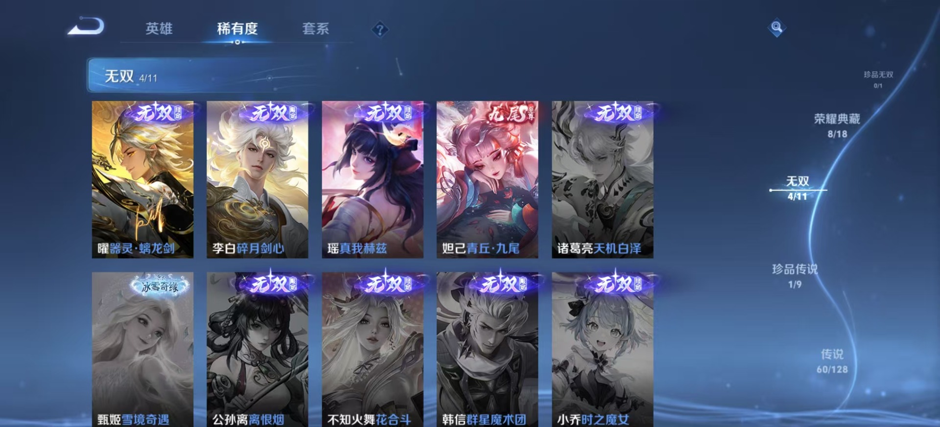 [11622765]V10 8典藏 4无双 1珍品传说 60传说 126英雄 504皮肤 典藏英雄武则天 可修改实名 优质装备:倪克斯神谕(宇宙婆娘),杀手不太冷,鸣剑·曳影,全息碎影(猴子典藏),星域神启(倪克斯贼亮),幻阙歌(貂蝉典藏),弑枪猎影(韩信典藏),真我赫兹(瑶)(瑶无双),青丘·九尾(妲己无双),碎月剑心(李白无双),神鉴启示录,器灵·螭龙剑,器灵·落星盏,黄金狮子座,黄金射手座,冠军飞将,云鹰飞将(小将军),绛天战甲(鸡嘴战神),猫影幻舞,久胜战神,炽阳神光,一念神魔,云霓雀翎,地狱火,仲夏夜之梦(大飞蛾),音你心动-小乔,海洋之心,地狱之眼,飞鸢探春,音你心动-周瑜,胖达荣荣,李逍遥,乞巧织情,时之恋人-刘备(电焊工),淬星耀世,超时空战士-狄仁杰,挚爱之约,山海·炽霜斩(李信年限),山海·琳琅生(小乔年限),山海·苍雷引(电光曜子),浮生妄,青丘·九尾,鹤羽星尊,鹤归松栖(云缨),艾琳觅芳踪,千劫归真,涂山容容 传说皮:乘龙·问璇玑(孙尚香年限),乘龙·铭钟鼎(赵云年限),乘龙·淬吴钩(孙策年限),落雪白狼,星之鸣奏,幻光神枪 珍宝阁皮:妄想食味,万物之道,优雅恋人,蔷薇恋人,女武神 限定皮:愿照·九州拓(澜年限),愿照·福禄聚(蔡文姬年限),愿照·岁时盈(虞姬年限),愿照·山河定(司空震年限),愿照·众生和(妲己年限),愿照·千秋盛(女娲年限),鸣野蒿,至尊宝,白虎志(电光耗子),凤求凰(白切鸡),凤凰于飞,梅西,傲雪梅枪,补天,寅虎·展翼(孙膑年限),绯月行,白晶晶,时雨天司(水龙头),神威(电光马子),飞衡(韩信年限),山海·碧波行(瑶年限),无限倾心-项羽,影龙天霄,遇见飞天,高山流水,诗剑行,无限倾心-虞姬,齐天大圣,降魔,五谷丰年,青龙志(铠年限),冰锋战神,幽恒(沐浴露),游园惊梦,梁祝,御风骁将(吕布年限),天狼狩猎者,龙胆,逐梦之翼,烈魂,天狼溯光者,祈雪灵祝(雪兔子),李小龙,逐梦之影,玄武志(苏烈年限),朱雀志(守约年限),辉光之辰,圣诞老人,真爱至上,纯白花嫁,孙行者,猪悟能,一生所爱,引擎之心,青春决赛季,冰霜恋舞曲,蜜橘之夏,美猴王,匿光追影者,女儿国国王,寅虎·御盾(廉颇年限),寅虎·心曲(虎婆),寅虎·赤拳(老虎年限),时之祈愿-云中君,时之祈愿-瑶(瑶传限),百木心枪,玉兔公主,启示之音,唐三藏,神器·万象笔,梦圆繁星,山海