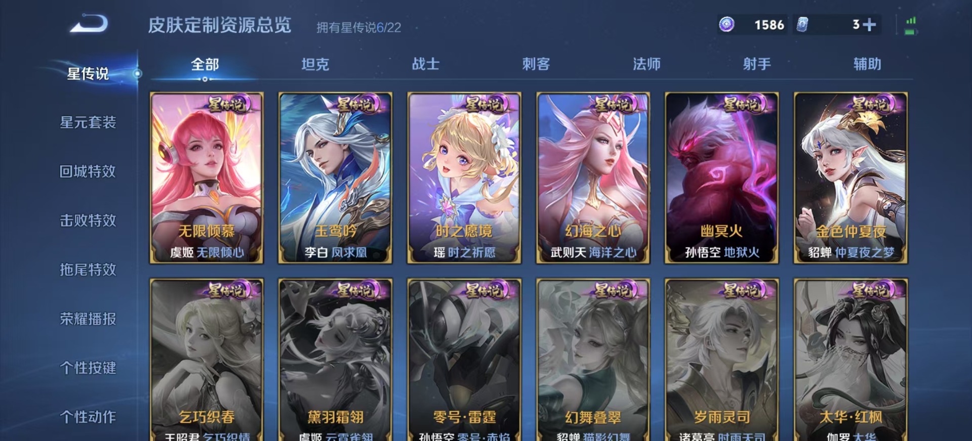 金蝉唐三藏,黄忠烈魂,老夫子圣诞老人,哪吒逐梦之翼,甄姬幽恒,甄姬女儿国国王,盾山梦圆繁星,铠青龙志,廉颇寅虎·御盾,伽罗天狼溯光者,苏烈玄武志,赵云百木心枪,赵云龙胆,孙膑寅虎·展翼,干将莫邪冰霜恋舞曲,小乔纯白花嫁,不知火舞绯月行,吕布御风骁将,露娜启示之音,后羿辉光之辰,露娜一生所爱,镜匿光追影者,周瑜真爱至上,诸葛亮时雨天司,杨玉环寅虎·心曲,公孙离祈雪灵祝,公孙离玉兔公主,兰陵王影龙天霄,司空震愿照·山河定,公孙离蜜橘之夏,裴擒虎梅西,裴擒虎李小龙,裴擒虎天狼狩猎者,裴擒虎寅虎·赤拳,上官婉儿梁祝,上官婉儿神器·万象笔,李白诗剑行,花木兰青春决赛季,马可波罗山海·玄木吟,桑启鸣野蒿,猪八戒猪悟能,女娲补天,女娲愿照·千秋盛,孙悟空孙行者,芈月白晶晶,孙悟空至尊宝,孙悟空美猴王,百里玄策白虎志,马超神威,赵云引擎之心,盘古冰霜神祇,云中君时之祈愿,妲己愿照·众生和,韩信傲雪梅枪,韩信飞衡,韩信逐梦之影,百里守约朱雀志,墨子降魔,蔡文姬愿照·福禄聚,瑶时之祈愿,瑶山海·碧波行,澜愿照·九州拓,虞姬愿照·岁时盈,王昭君凤凰于飞,关羽冰锋战神