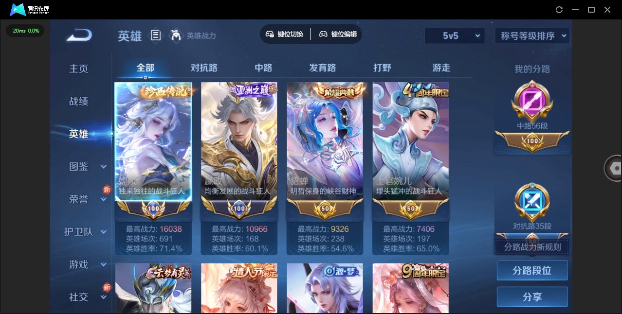 - [11882590]V8 1典藏 18传说 124英雄 256皮肤 可修改实名 优质装备:最初的交响(伽罗典藏),云鹰飞将(小将军),猫影幻舞,久胜战神,一念神魔,仲夏夜之梦(大飞蛾),零号·赤焰,地狱之眼,飞鸢探春,碎云,山海·炽霜斩(李信年限),妄想奇谈,惊梅引,霜月吟,澜逐花归海 传说皮:吕布曦玄引 珍宝阁皮:妄想食味,玩趣恶龙 限定皮:逐霄战戟,鸣野蒿,傲雪梅枪,时之彼端,高山流水,诗剑行,五谷丰年,梁祝,御风骁将(吕布年限),岱宗(典韦年限),朱雀志(守约年限),孙行者,大圣娶亲,引擎之心,青春决赛季,百木心枪,时之奇旅-妲己 史诗皮:化蝶舞,茶境仙,破空之剑,谪仙醉月,上官婉儿群星魔术团,蔬乡物语(鲁班七号),琥珀纪元伽罗,百相守梦-百里守约,百相守梦-黄忠,紫霞仙子,电玩小子(小书包),黄金分割率,特工魅影,千年之狐,电玩·爆裂旋风,浮梦罗烟,真我赫兹(百里守约),匿光侦查者,江河有灵,百解令(蒙犽),高渐离燃音魔法,暗夜猫娘,魅语,晚萤,冰冠公主,末日机甲-吕布,猫狗日记-大乔,时之恋人-孙尚香,乱世虎臣,节奏热浪,修罗,女仆咖啡,水果甜心,天才门将,星夜王子,心灵骇客,功夫厨神,德古拉伯爵,暗隐猎兽者,鬼剑武藏,暗渊魔法,心灵战警,乐园奇幻夜,舞动绿茵,纤云弄巧,拒霜思,乘风破浪,逐浪之夏,月团寄思,曙光守护者,金属风暴,圣诞狂欢,圣诞恋歌,鹰眼统帅,魅力维加斯,无心,未来纪元-赵云