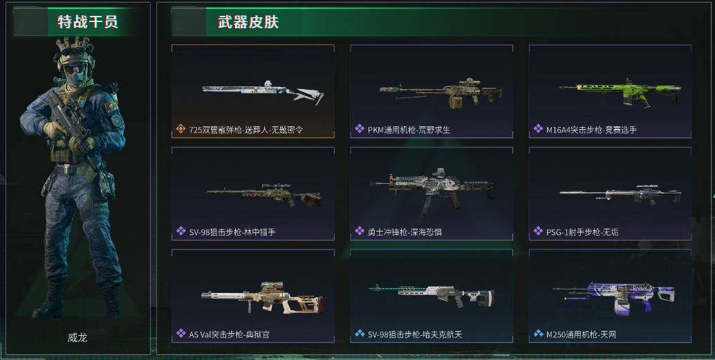 - [11601925]总资产:258.6 2干员外观 11传说枪械 顶级安全箱(3×3)9.15号到期 可二次 可修改实名 烽火地带段位:黑鹰 全面战场段位:列兵 哈夫币:14.839 传说武器皮肤:AS Val突击步枪-蛇年祥瑞,SR-25射手步枪-水墨云图,SCAR-H战斗步枪-铁艺苍穹,AK-12突击步枪-夜鹰,复合弓-黑-天际线,CAR-15突击步枪-阿米娅,725双管霰弹枪-送葬人-无题密令,M7战斗步枪-维京,M7战斗步枪-怜悯,M4A1突击步枪-蚀金玫瑰,M7战斗步枪-神秘艺术 干员外观:红狼-蚀金玫瑰,露娜-黑·天际线