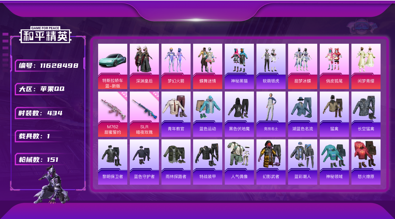 [11628498]6粉装 2特效枪 1载具 9印记 可二次 可修改实名 优质装备:特斯拉Roadster(水滴蓝),M762甜蜜誓约,梦幻火箭(新101)(新火箭少女101粉色套装),蝶舞迷情,深渊皇后,俏皮狐尾,甜梦冰蝶,SLR暗夜玫瑰,七级SLR-暗夜玫瑰,七级M762-甜蜜誓约 热门装扮:闲梦青缨,神秘黑猫,软萌银虎 紫色装扮:田园牧歌,轻风白浪,和煦暖阳,SS22特训,SS23特训,照水倚天,娇憨猪猪,梦幻奶油,樱桃黑巧,萌趣咩咩,暖心熊熊,SS21特训,人气偶像,军械专家,冰川特警,SS20特训,青春冒险家,潮流游乐家,SS15特训,蝎王蛇后,时空追击者,暴风机械师,星辰守护者,SS16特训,冰爽风暴,爆裂葡萄,冰爽海盐,银白舞王,SS13特训,击剑大师,治愈之星,迅捷之星,科技之星,SS14特训,怪笑疯兔,萌趣颜团子,特种颜团子,海龙战士,飞驰魅影,音速流光,极速竞梦,SS19特训,覆海蛟龙,吉莉礼服,甜心亚梦,虚音幻奏,瑞龙福将,团圆交子,醒狮腾龙,SS17特训,炫光向阳,沁蓝冰爽,异彩先驱,缤纷焰火,SS18特训,酷潮明星,长空猛禽,雨林探路者,霓虹极客,霓虹街区,青年教官,蓝彩潮人,蓝色守护者,蓝色运动,虎虎生威吉莉,飞行日记,麻辣教官,黎明保卫者,黑色伏地魔,极速红龙,柠萌假日,格斗先锋,沙漠兵团,幻影武者,夏日音浪,幻世战舞者,怒火燎原,探宝勇士,湖蓝色名流,破晓战魂,破蛋小黄鸡,神秘领域,福星高照,空投萌叽,王牌教练,牛气冲天,炫蓝之夏,热血青春,牛气满满,猛禽,特战装甲,镭射皇者,静谧青瓷,玉兔迎春,竞技名士,SS24特训(SS24特训套装),SS25特训,粉红小猪,日照花林,SS26特训,玲珑飞花,神秘舞者,朱雀圣者,粉甜马卡龙,原初圣火,逆风勇士,SS12特训,纯白誓言,SS9特训,SS10特训,暗夜契约,SS11特训,耀粉歌者,萌黄之夏,金耀舞者,光之冒险,海上生明月 优质战备:炙焰牛王降落伞,恐龙拽拽降落伞,春暖花开降落伞,深海曼妙降落伞,甜蜜誓约降落伞,锦绣火鲤降落伞,夏日绵绵冰降落伞,四圣焕新降落伞,童趣迷兔降落伞,怪笑疯兔降落伞,烈焰拳霸降落伞,蓝莓炮弹降落伞,飞行器-青春物语