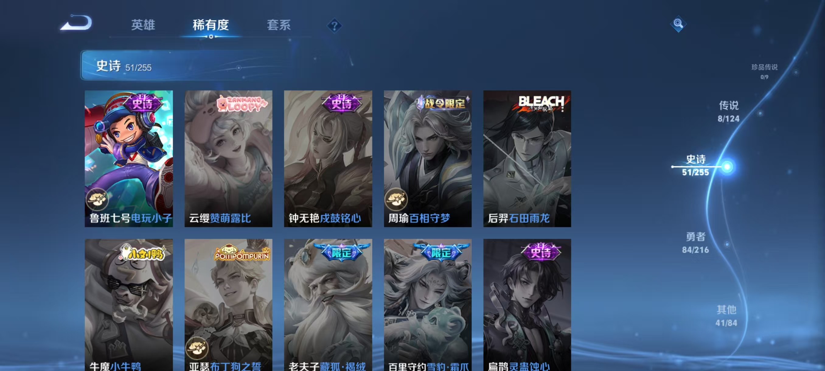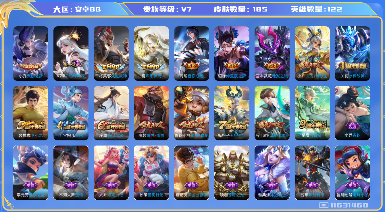 [11631460]-可二次-V7-122英雄-185皮肤-1典藏-1星传说-8传说-51史诗 炽阳神光-镜 山海·琳琅生-小乔 山海·玄木吟-马可波罗 冰锋战神-关羽 冰冠公主-雅典娜