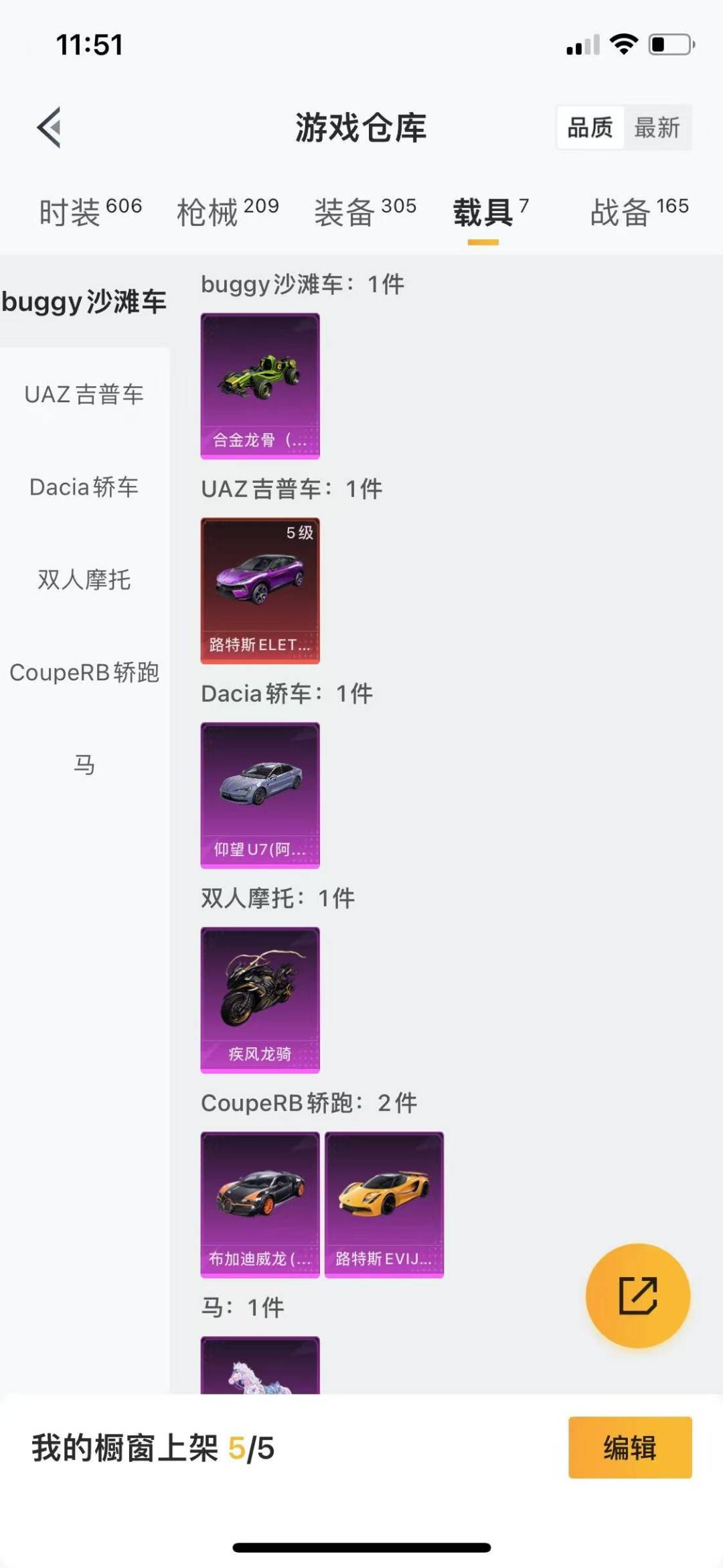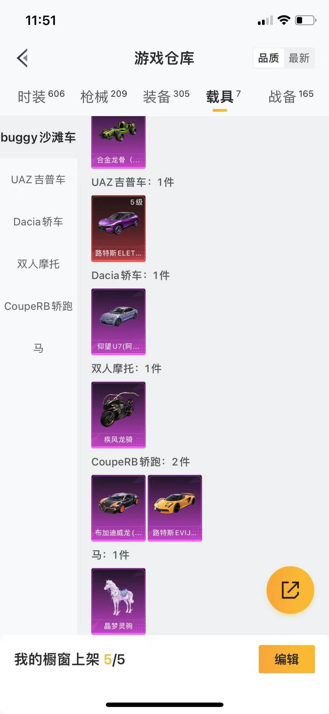 合金龙骨(绿),路特斯ELETRE(电光紫),仰望U7先锋版(阿盖尔紫),疾风龙骑,路特斯EVIJA(星际黄),布加迪威龙(律动橙),晶梦灵驹,僚机-萌兔起飞