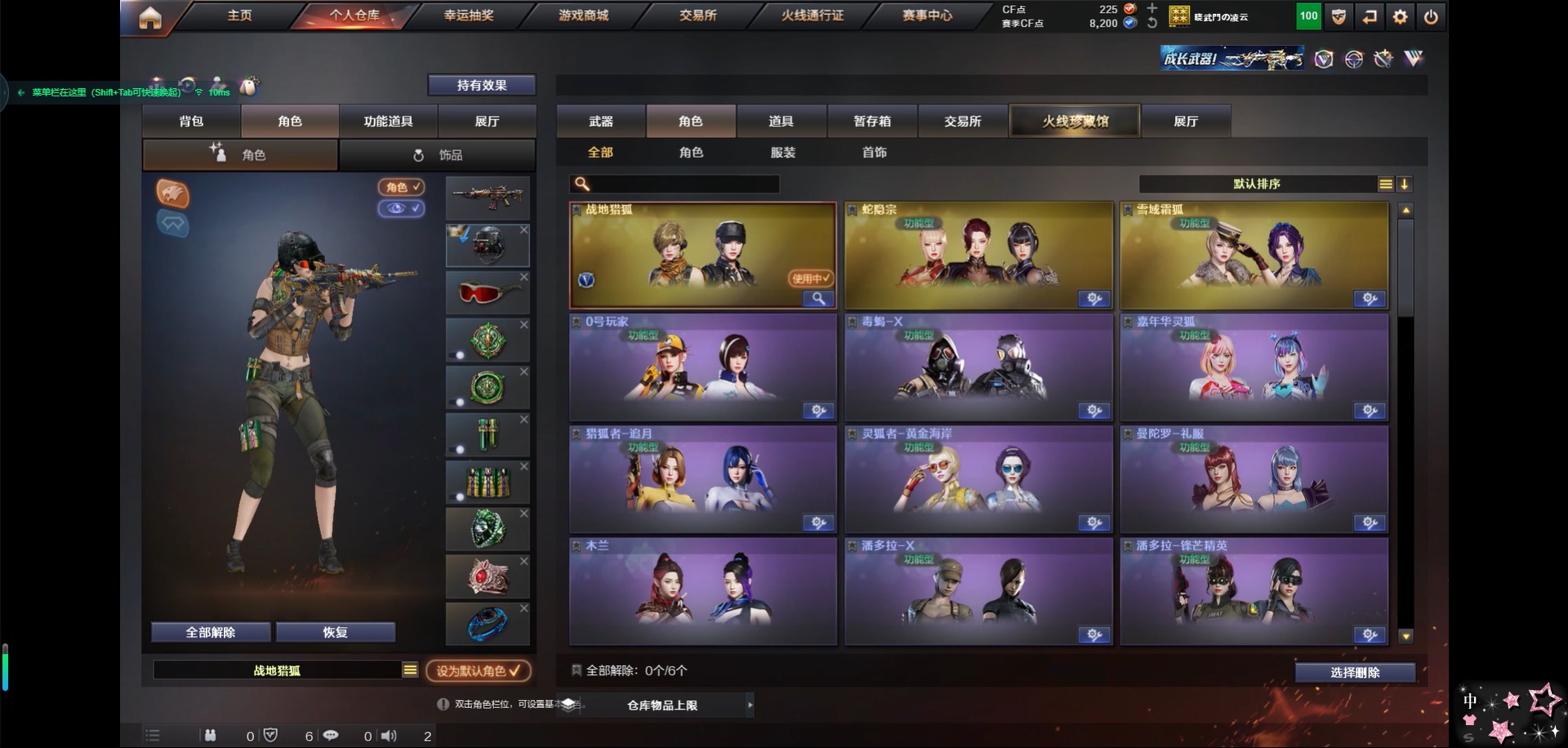 - [11297410]8粉装 5特效枪 1载具 1印记 可二次 可修改实名 身法装备:暗影哥特(红眼罩),萌熊伴侣背包(粉熊背包) 热门装扮:宁雨蝶,荧海星豚,幻彩电音,天龙座 紫龙,梦幻火箭(新101)(新火箭少女101粉色套装),智能音符,绚金战神,繁龙极客,胖达团团 载具:宝马M4(圣保罗黄),僚机-萌兔起飞 稀有枪皮:Kar98K-巳巳如意,MK12-雪月幻音,M416-灵猫魔法师,MG-36-幻彩电音,M416风花雪月 五级特效枪:五级Kar98K-巳巳如意,五级MG-36-幻彩电音,五级M416-风花雪月 三级特效枪:三级M416-灵猫魔法师 一级特效枪:一级MK12-雪月幻音 紫色装扮:时希公主,灵公主,乐音,SS30特训套装,SS31特训套装,云朵鹅,彩虹兔,雪绒豹,SS33特训套装,顶瓜瓜,蓝色运动,超能勇士,空岛之星,缤纷果语,香桃花海,蜜露汐语,魅力单车,黄色运动,柠萌假日,幽冥伯爵,沙漠狂蝎,特殊使命,特训学院,海岛探路者,燕燕于飞,暗影哥特(红眼罩),鱼渊荷华,森林游猎者,星途旅人,SS25特训,天网终结者,星渊小夜曲,大橘大利,星影赞美诗,粉恋花,蓝冰羽,紫幽梦,SS32特训服(SS32特训套装),绯格组合,恋语绒绒,六号稻草人 优质战备:繁龙极客飞行器,幻彩电音降落伞,灵猫魔法师飞行器,灵猫魔法师降落伞,荧海星豚降落伞,冷漠罗丽降落伞,齐天大圣降落伞