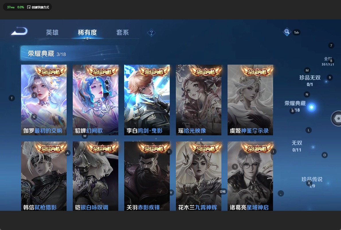 - PX_2095081-可二次 v7 199皮肤 1典藏 4传说 1皇冠 全息碎影 乘风破浪 凤求凰 孙行者 大圣娶亲 飞衡 傲雪梅枪 朱雀志 冰锋战神 地狱火 黄金射手座 孙尚香-末日机甲 逐梦之星 逐浪之夏 逐梦之影 狮心王 优雅恋人 无心 蔷薇