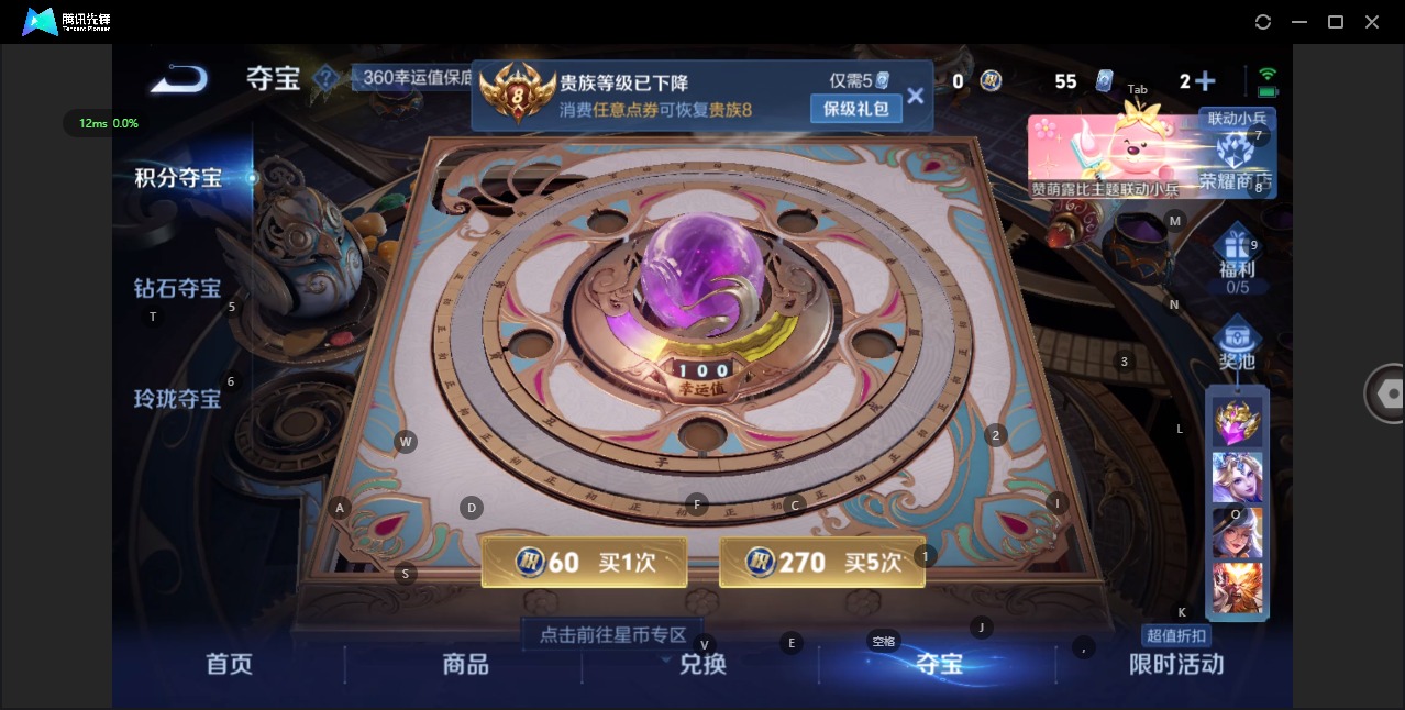 - PX_2113073-游走46段妹子号-安卓q-有二次-贵9-125英雄-373皮肤-1典藏-2珍品-3星元-35传说-137限定-1天幕-6按键-【热皮:武则天-无限飓风号-黄金天蝎座-落雪白狼-曦玄引吕布-乘龙淬吴钩-凤求凰-幻光神枪-愿照岁时盈-愿照千秋盛-愿照众生和-愿照九州拓-愿照山河定-愿照福禄聚】【亮点:满蛇年-对抗25段-星币8.9k-满铭文】-贵族积分10w-营地ID:21168